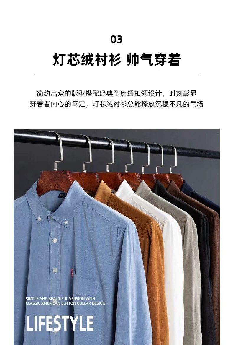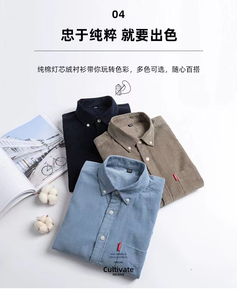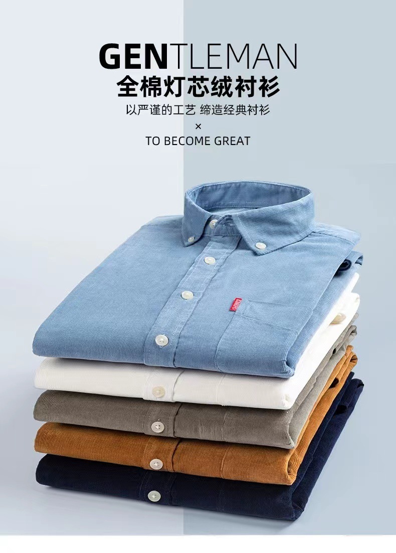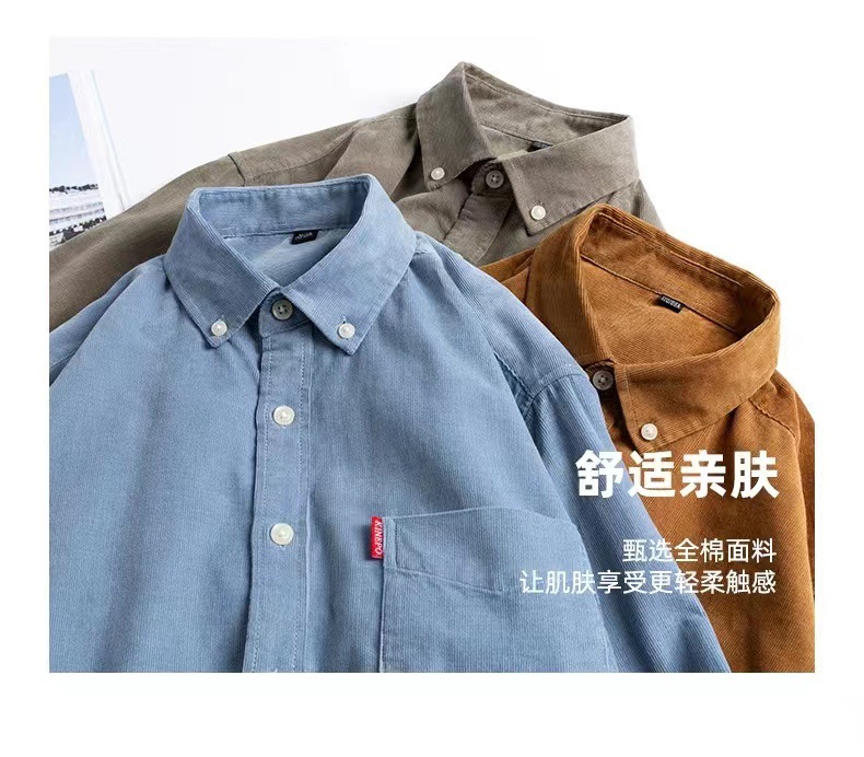 신상 순면 코듀로이 긴팔 셔츠 남성용 봄 가을 캐주얼 비즈니스 레트로 스트라이프 셔츠 남성복스토어 가기