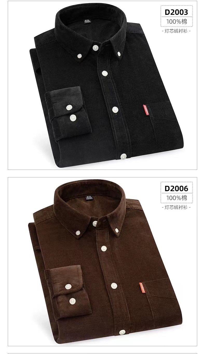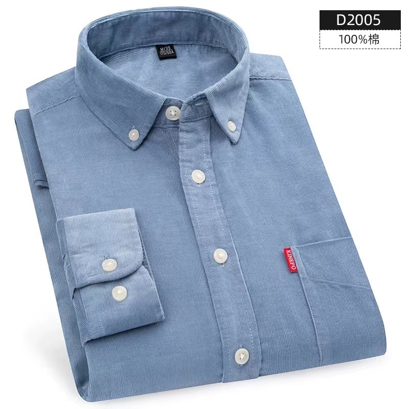 신상 순면 코듀로이 긴팔 셔츠 남성용 봄 가을 캐주얼 비즈니스 레트로 스트라이프 셔츠 남성복