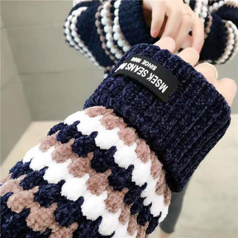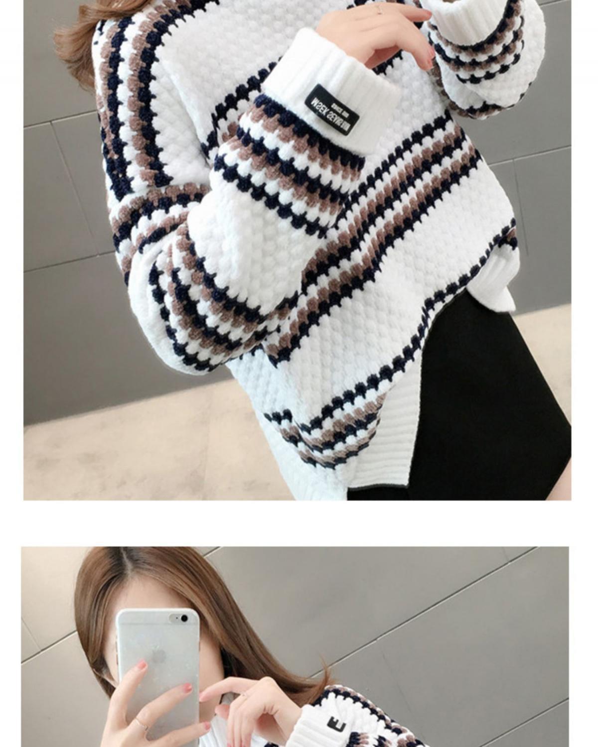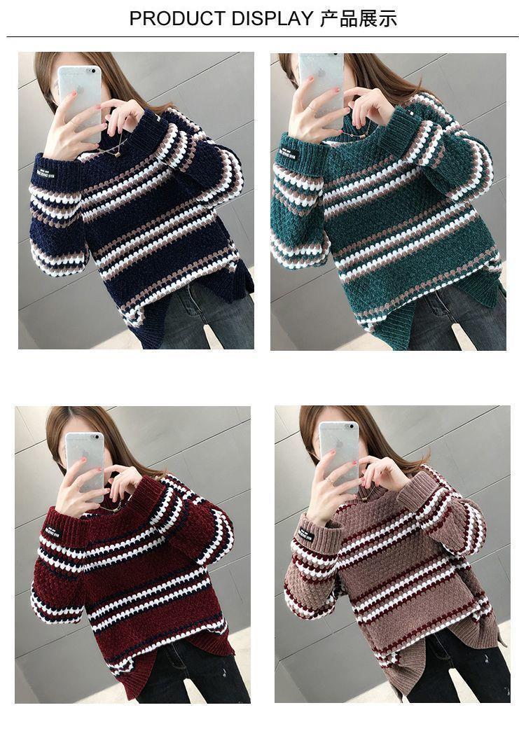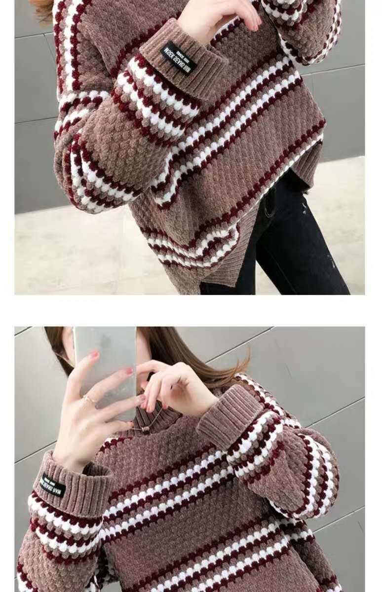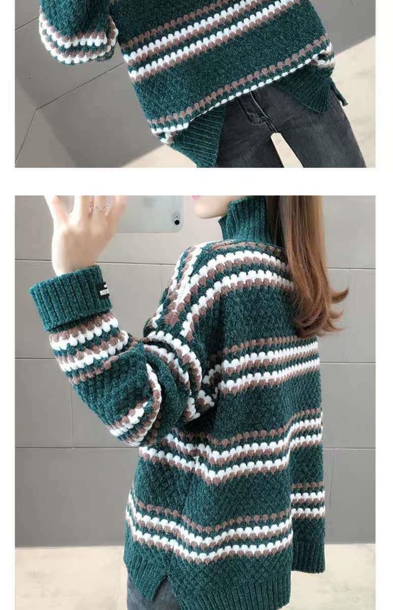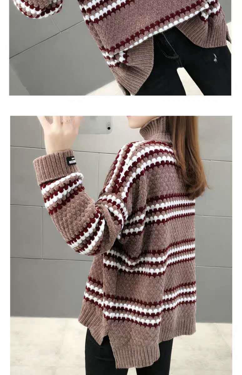 여성용 하이넥 스웨터 가을 겨울 신상 스트라이프 루즈핏 아우터 셔닐 다용도 레이지 스타일 니트 상의스토어 가기