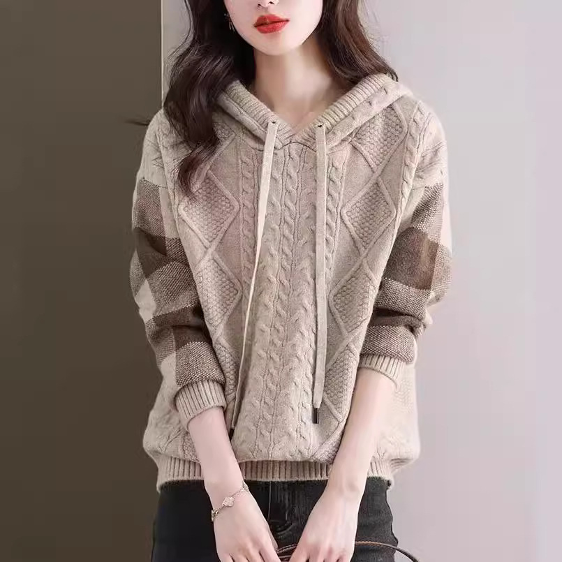 慵懒风连帽宽松针织衫长袖上衣2024秋冬新款时尚休闲打底衫毛衣女