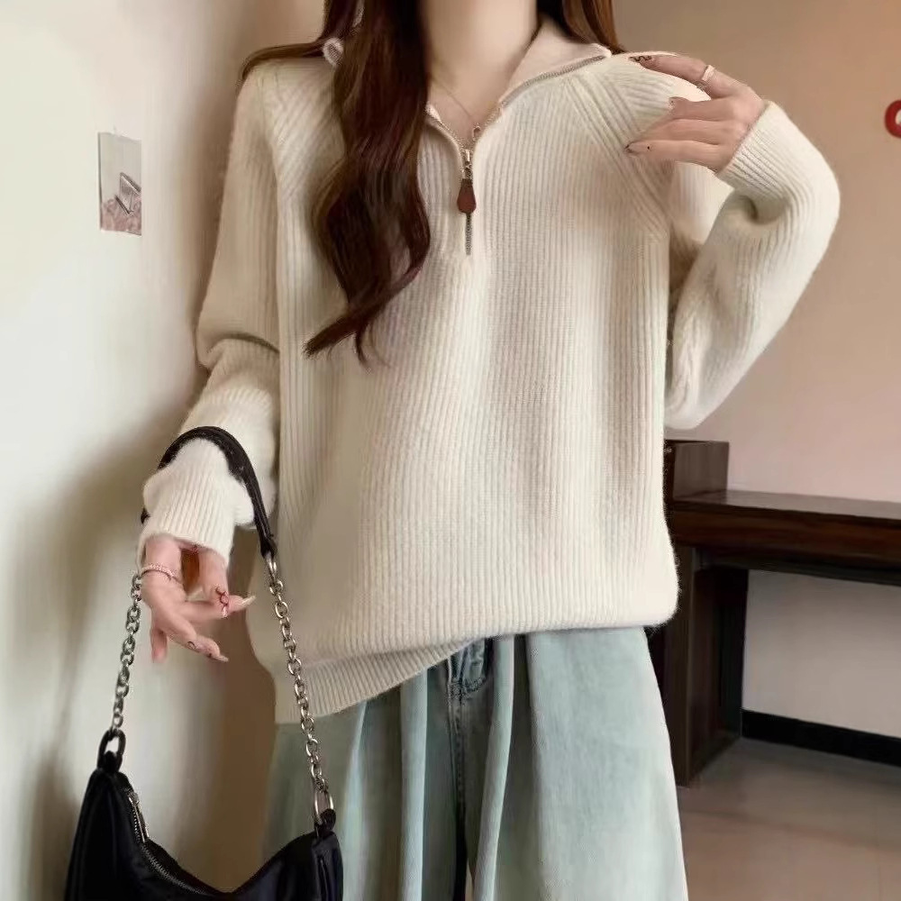 半拉链高级感套头毛衣春季2025新款纯色设计感慵懒风外套上衣女装