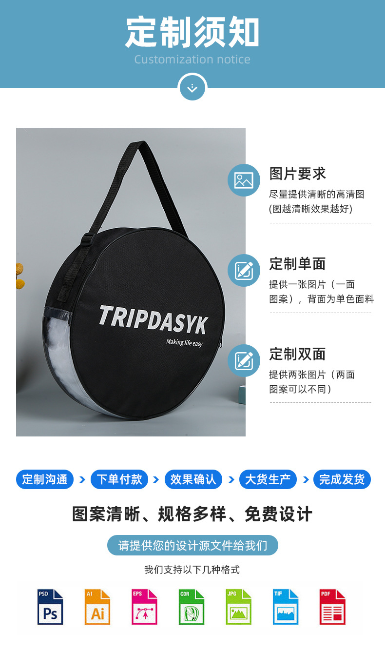공장 맞춤형 옥스포드 천 핸드백 맞춤형 로고 방수 케이블 와이어 보관 가방 지퍼 원형 도구 가방스토어 가기