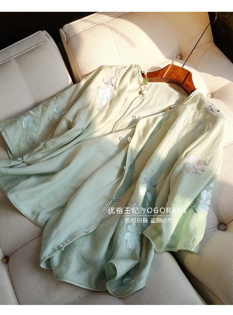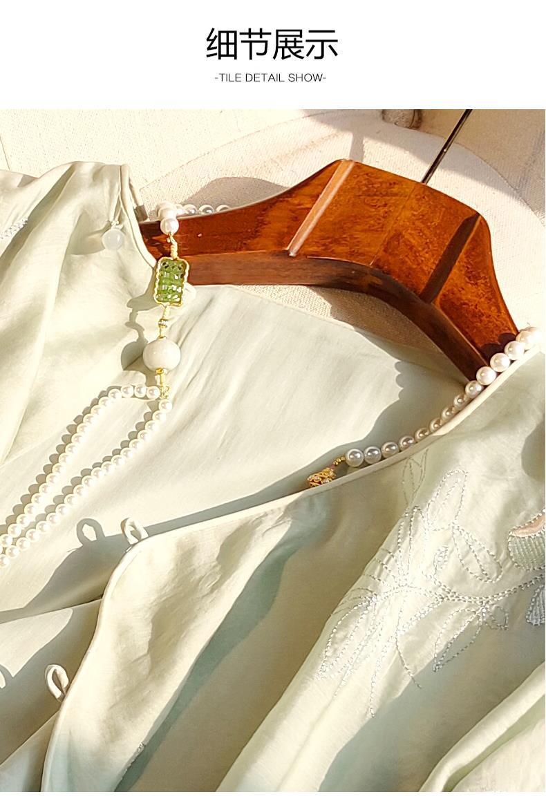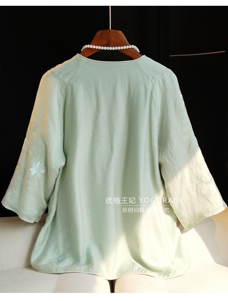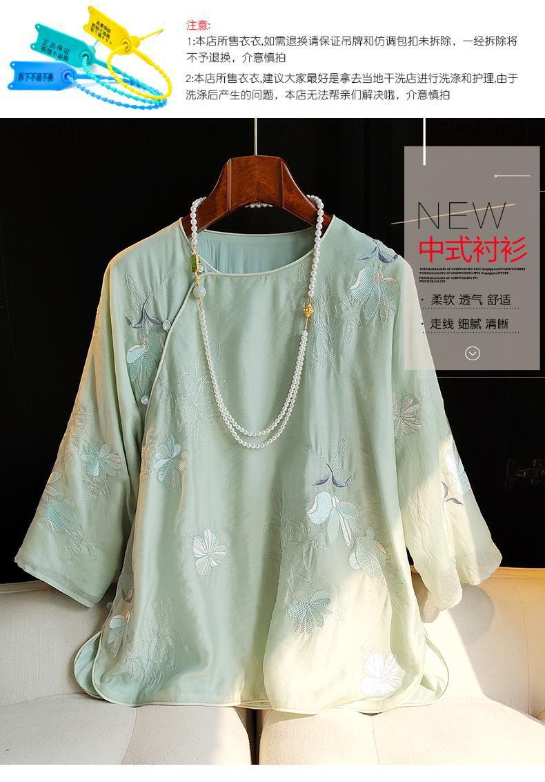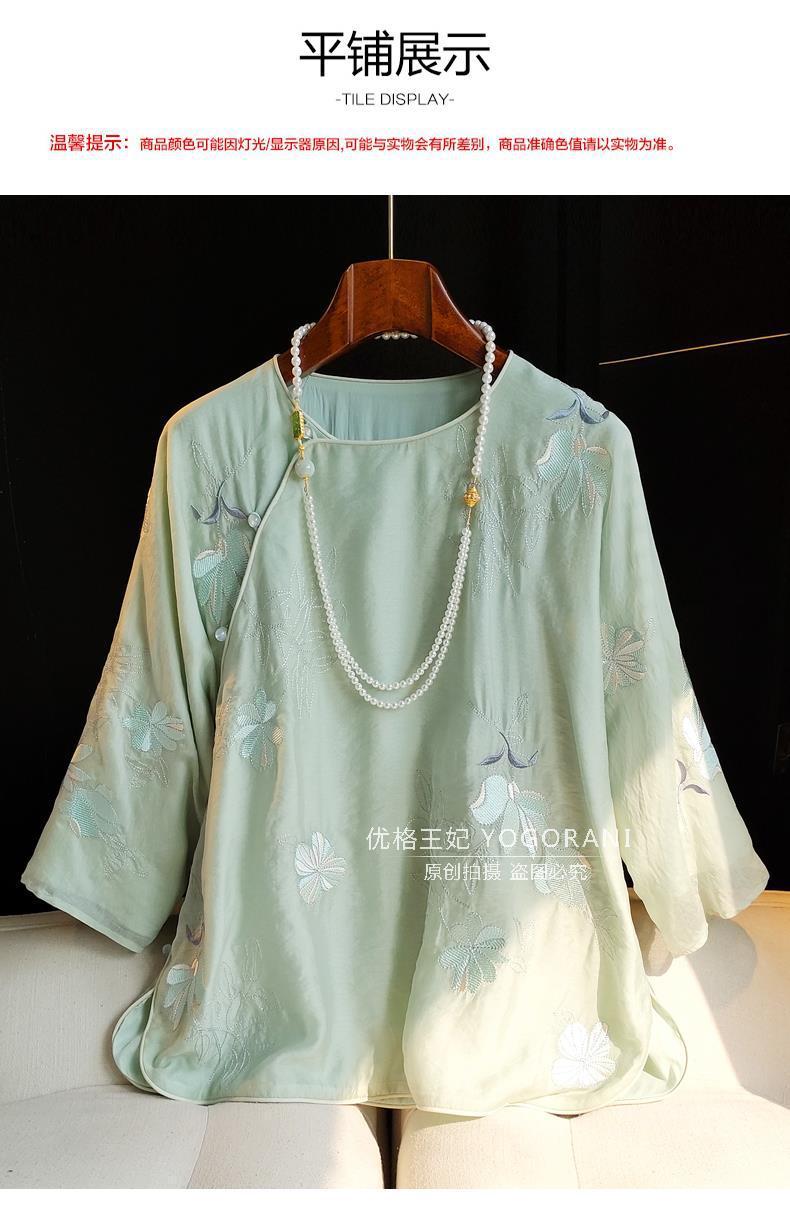 중국 스타일 라운드넥 자수 탑 여성용 2023 여름 신상 레트로 사선 플래킷 버튼 캐주얼 중국풍 셔츠 루즈핏스토어 가기