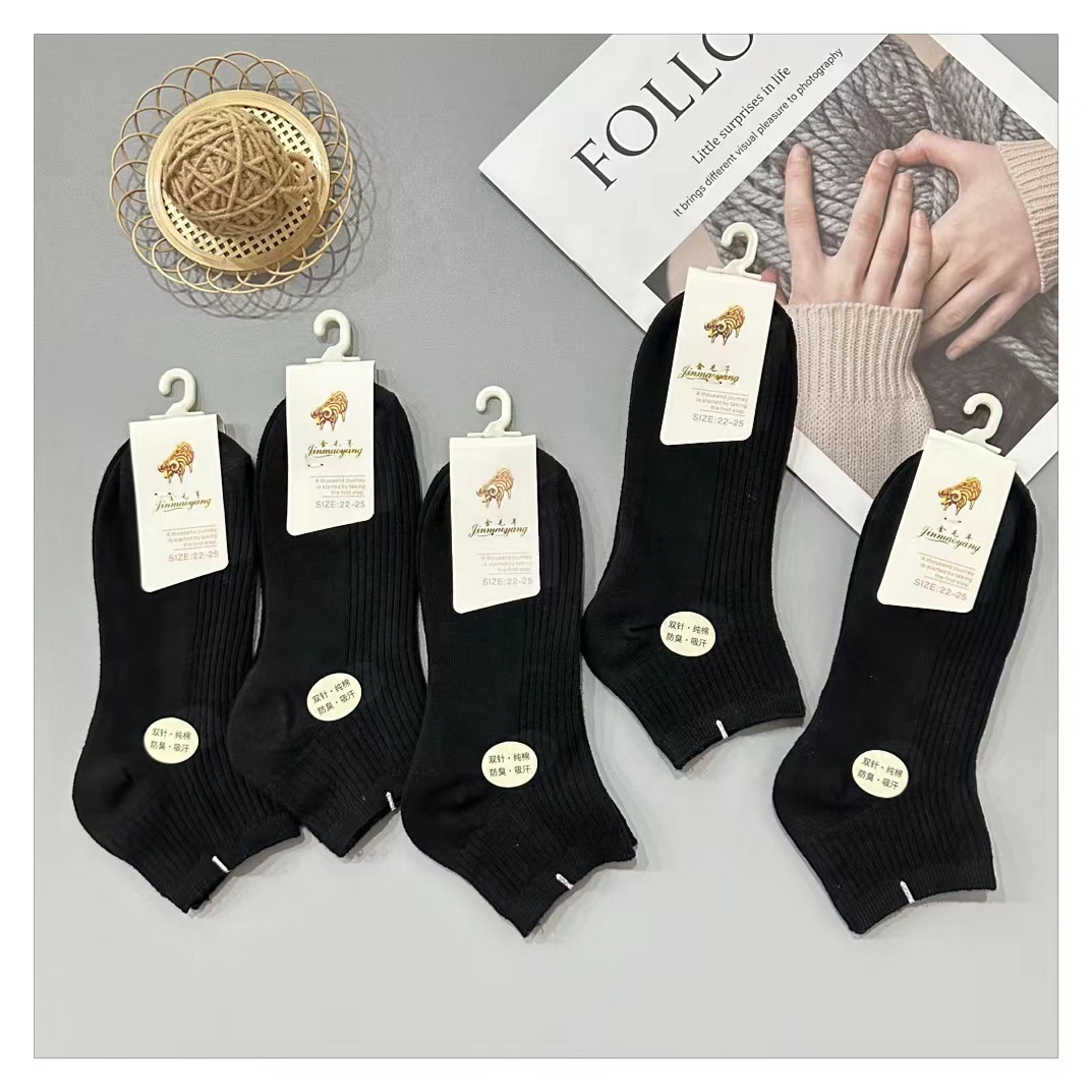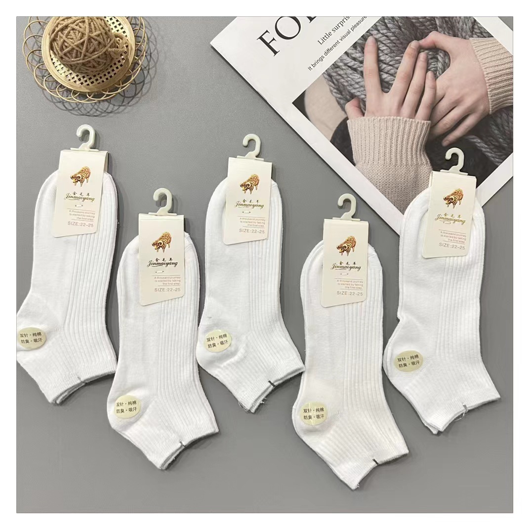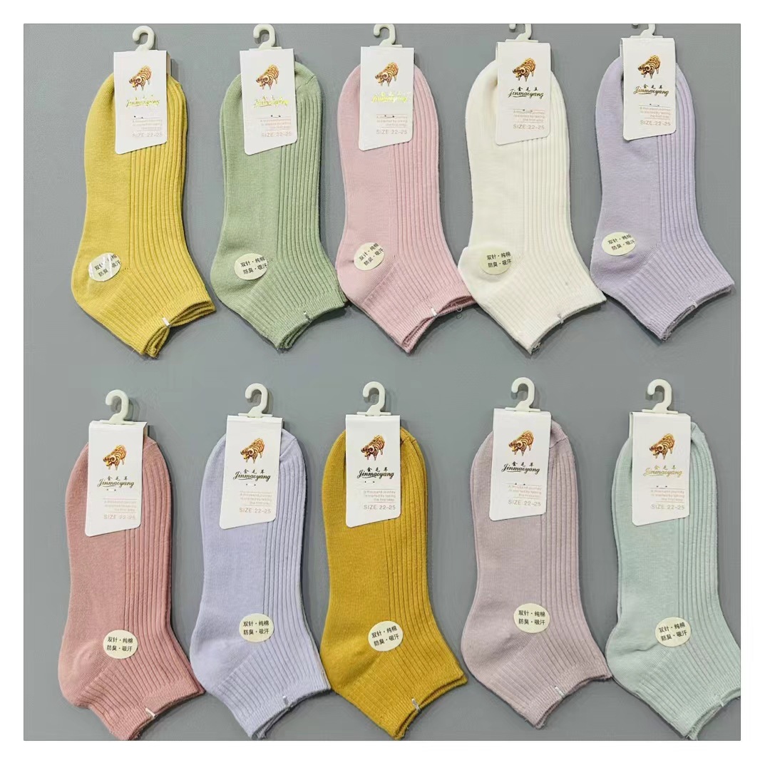 사계절 남녀 더블 니들 단색 보트 양말 짧은 스트립 양말 슈퍼마켓 야간 시장 면 보트 양말