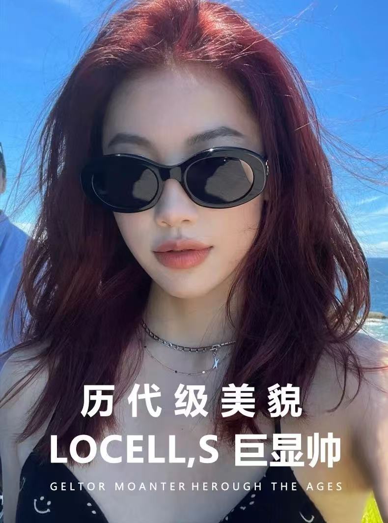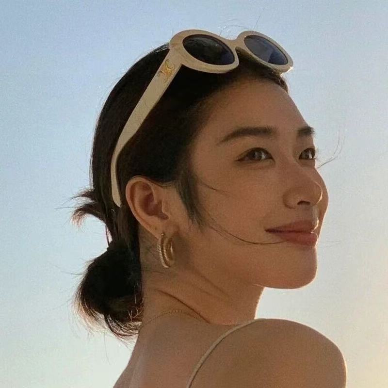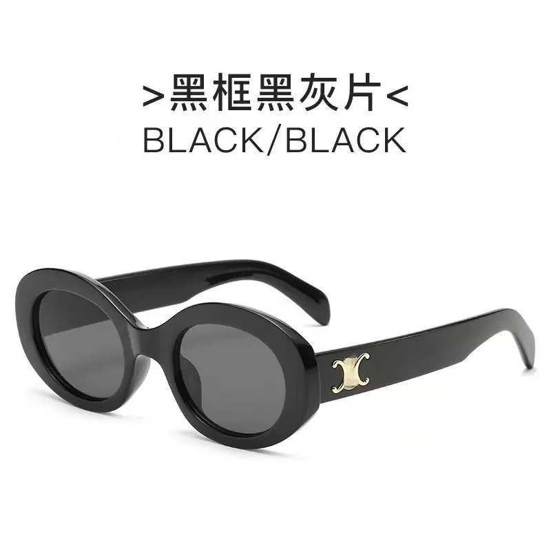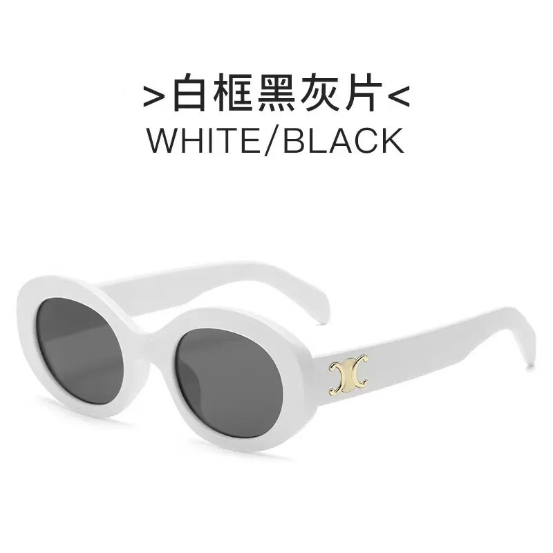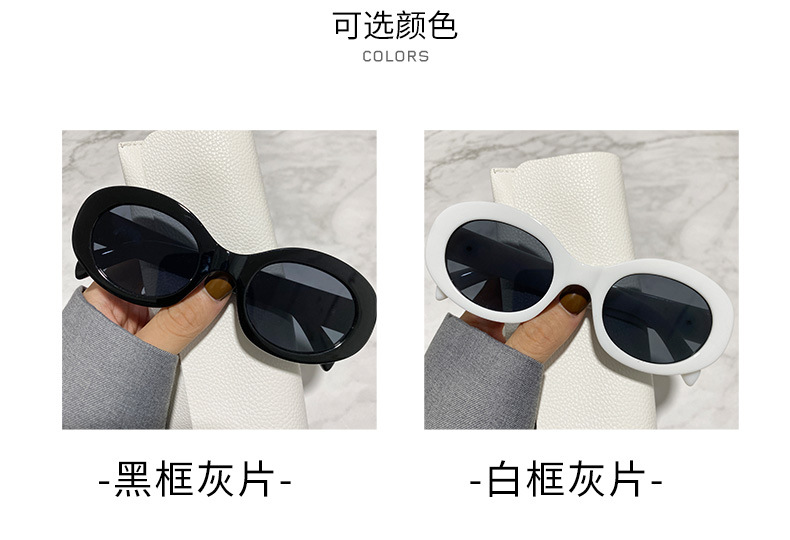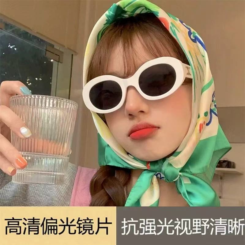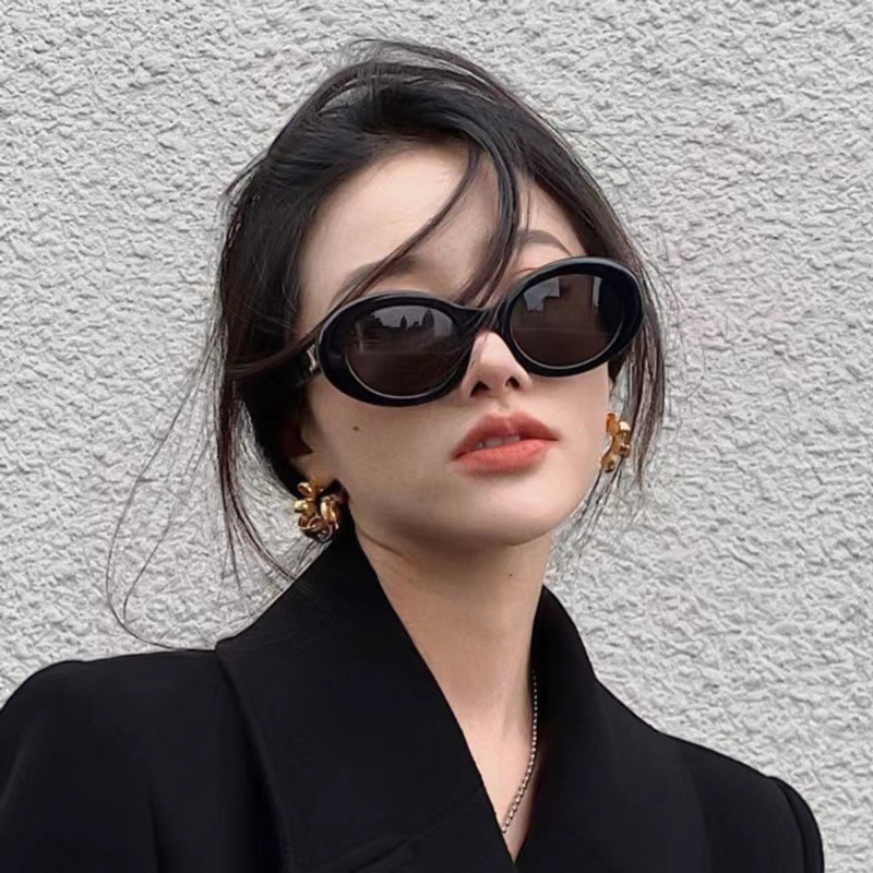 한국 스타일 복고풍 타원형 검정색 프레임 선글라스 2025 새로운 유행 여성 기능 오목한 모양의 흰색 선글라스 인터넷 연예인 모델스토어 가기