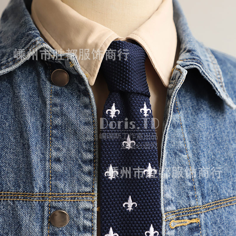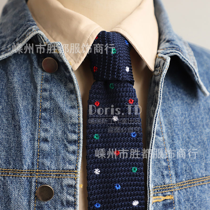 공장 재고 도매 복고풍 한국 캐주얼 플랫 니트 모직 넥타이 남성 패션 세트 액세서리 대학스토어 가기