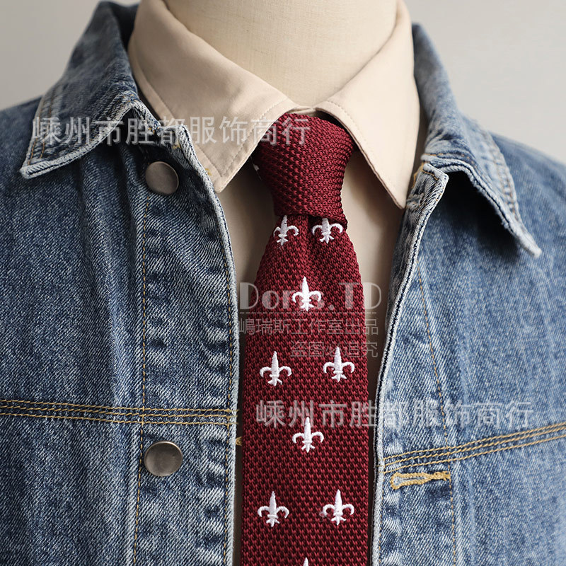 공장 재고 도매 복고풍 한국 캐주얼 플랫 니트 모직 넥타이 남성 패션 세트 액세서리 대학