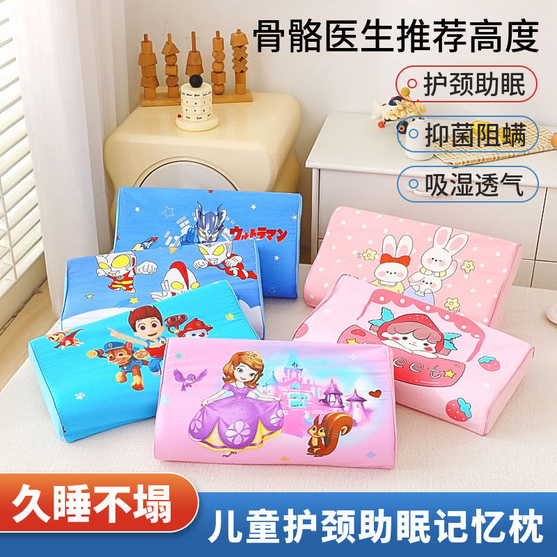 기억 거품 목 베개 어린이 베개 낮은 베개 얇은 베개 0-6-18 세 유치원 남녀 학생 아기 베개