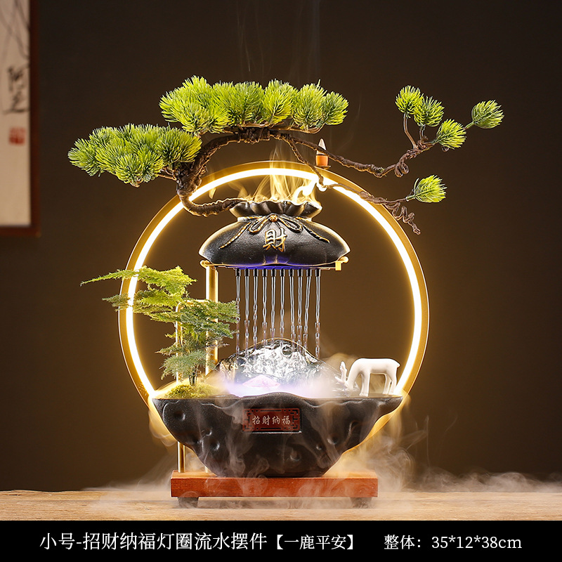 • 중간 럭키 나푸 랜턴 서클 흐르는 물 장식품 [부자가 될 사슴]