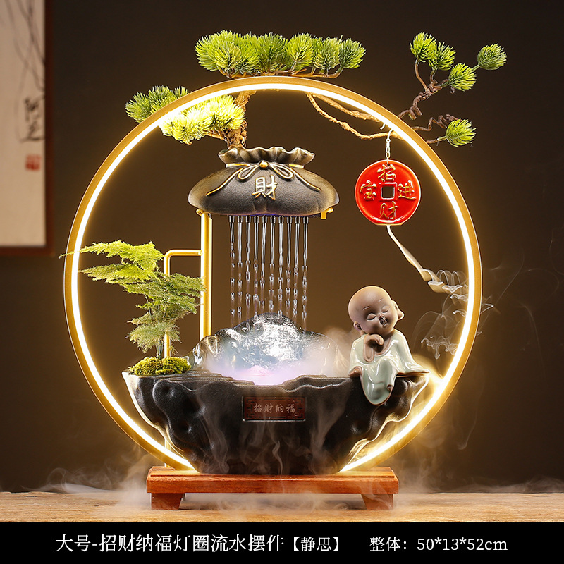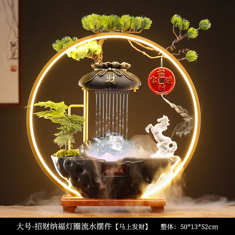 • 대형 행운의 랜턴 서클 흐르는 물 장식품 [지금 부자가 되세요]