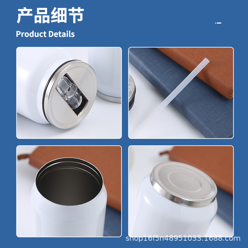 열과 냉기를 유지하는 빨대가있는 현대 간단한 콜라 캔 보온병 컵 로고 맞춤형 스테인레스 스틸 캔