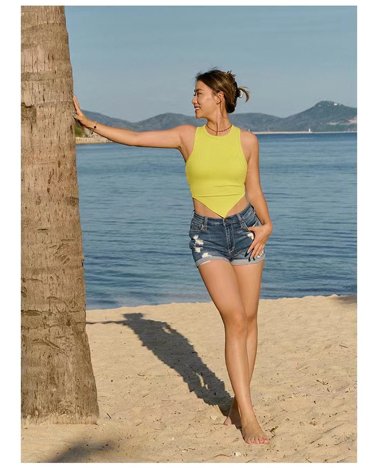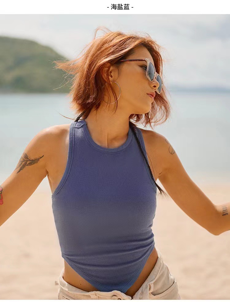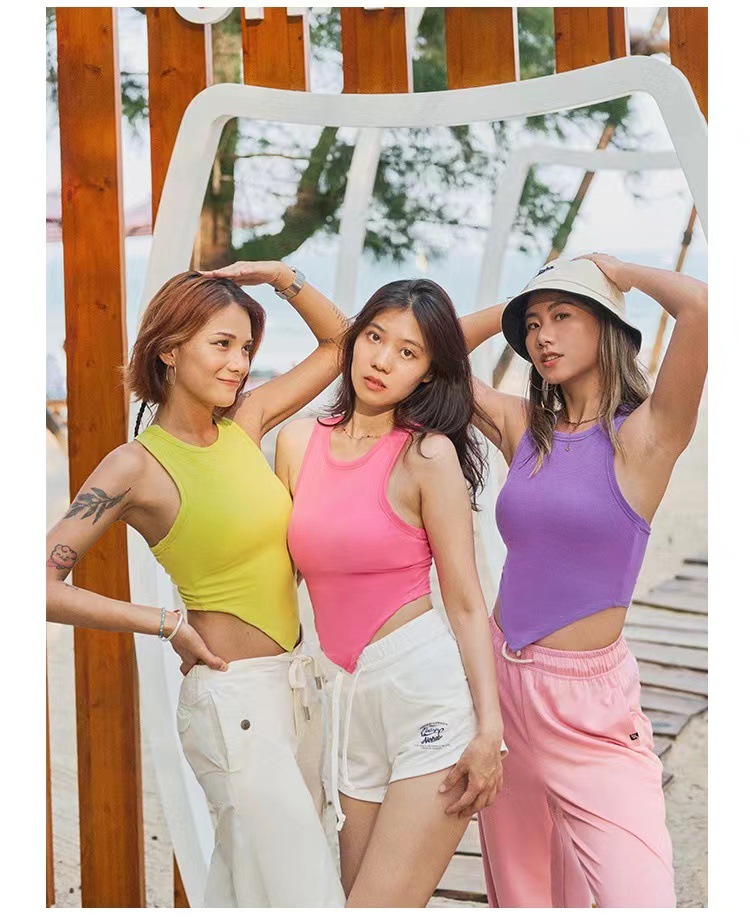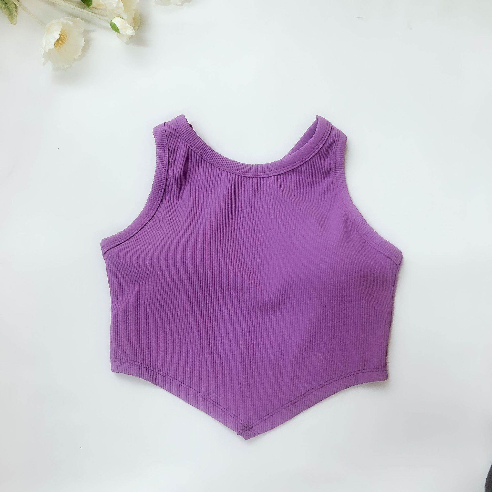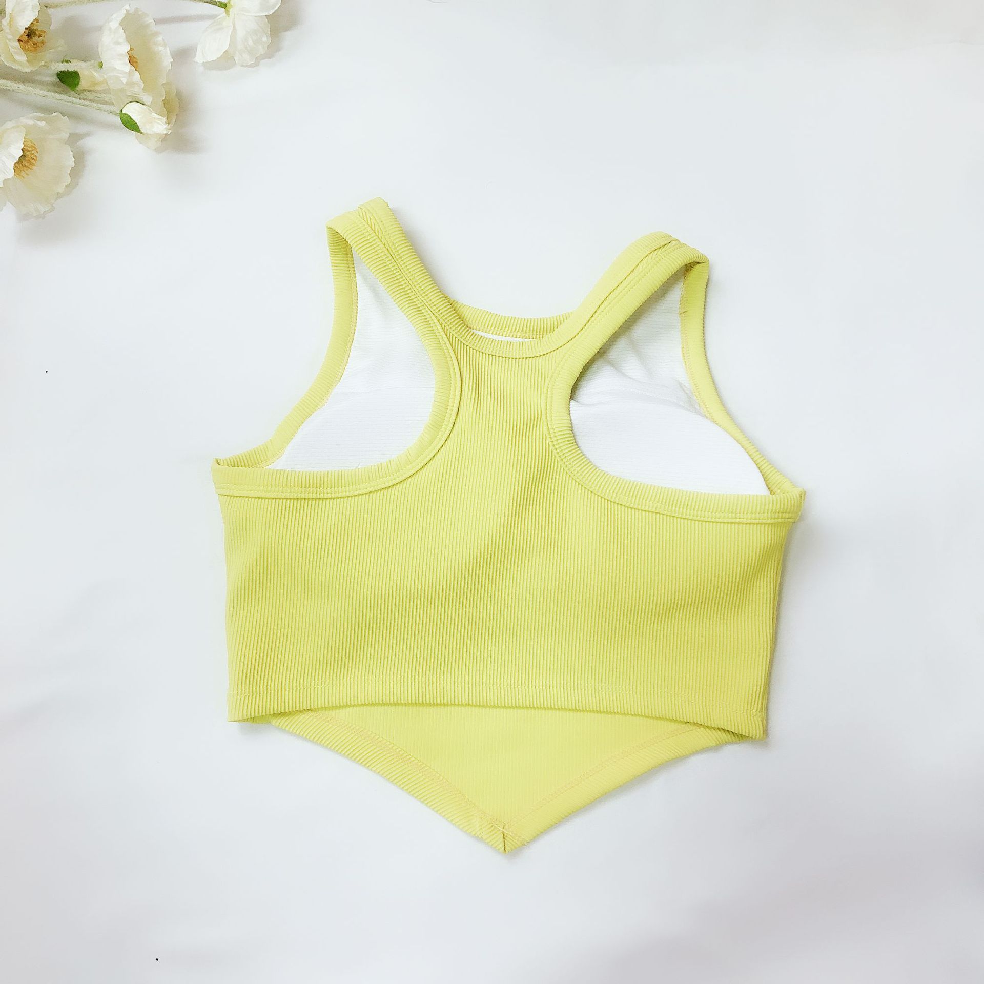 새로운 도파민 요가 탑 여성 불규칙 가슴 패드 스트라이프 I 자형 조끼 스포츠 피트니스 트레이닝 의류