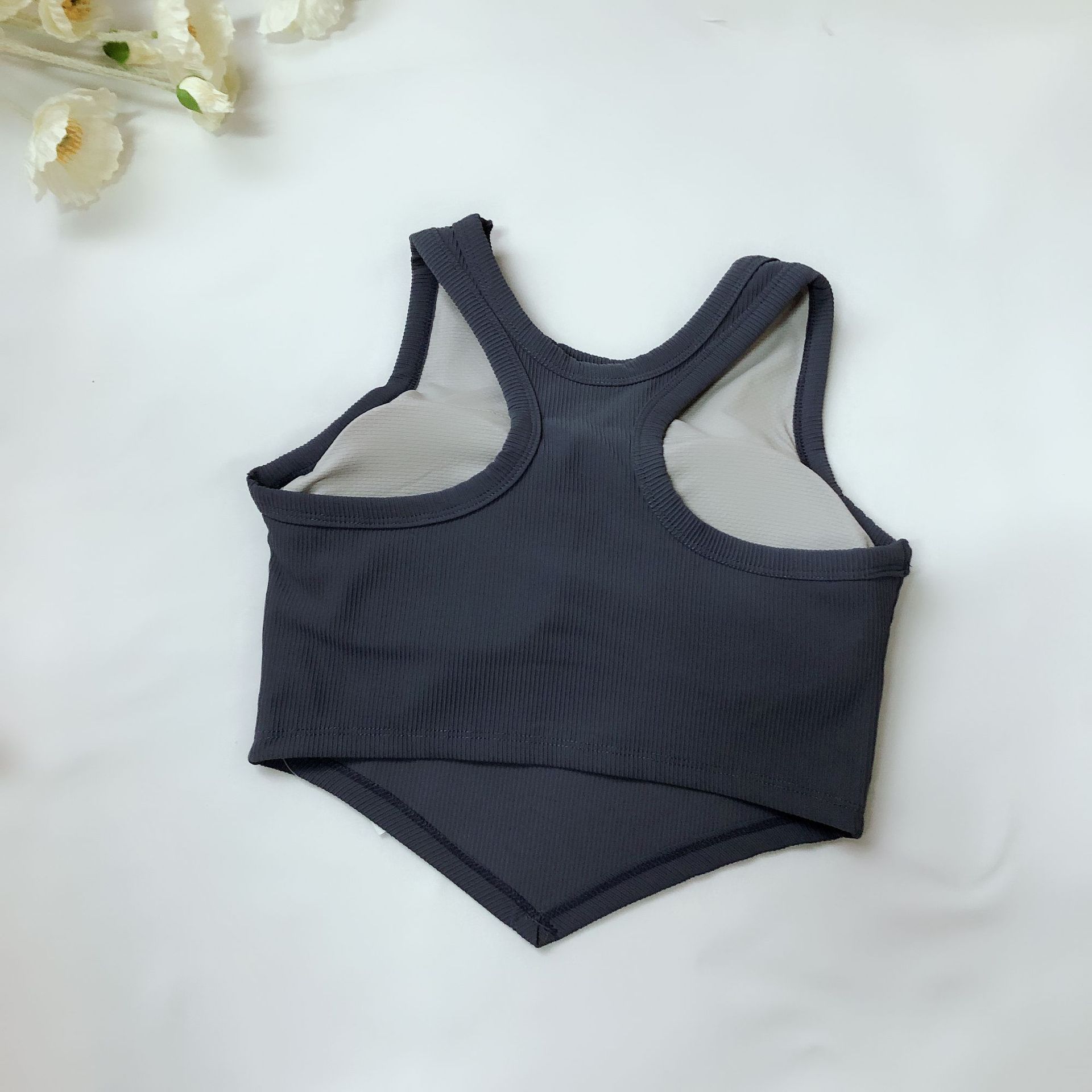 새로운 도파민 요가 탑 여성 불규칙 가슴 패드 스트라이프 I 자형 조끼 스포츠 피트니스 트레이닝 의류스토어 가기