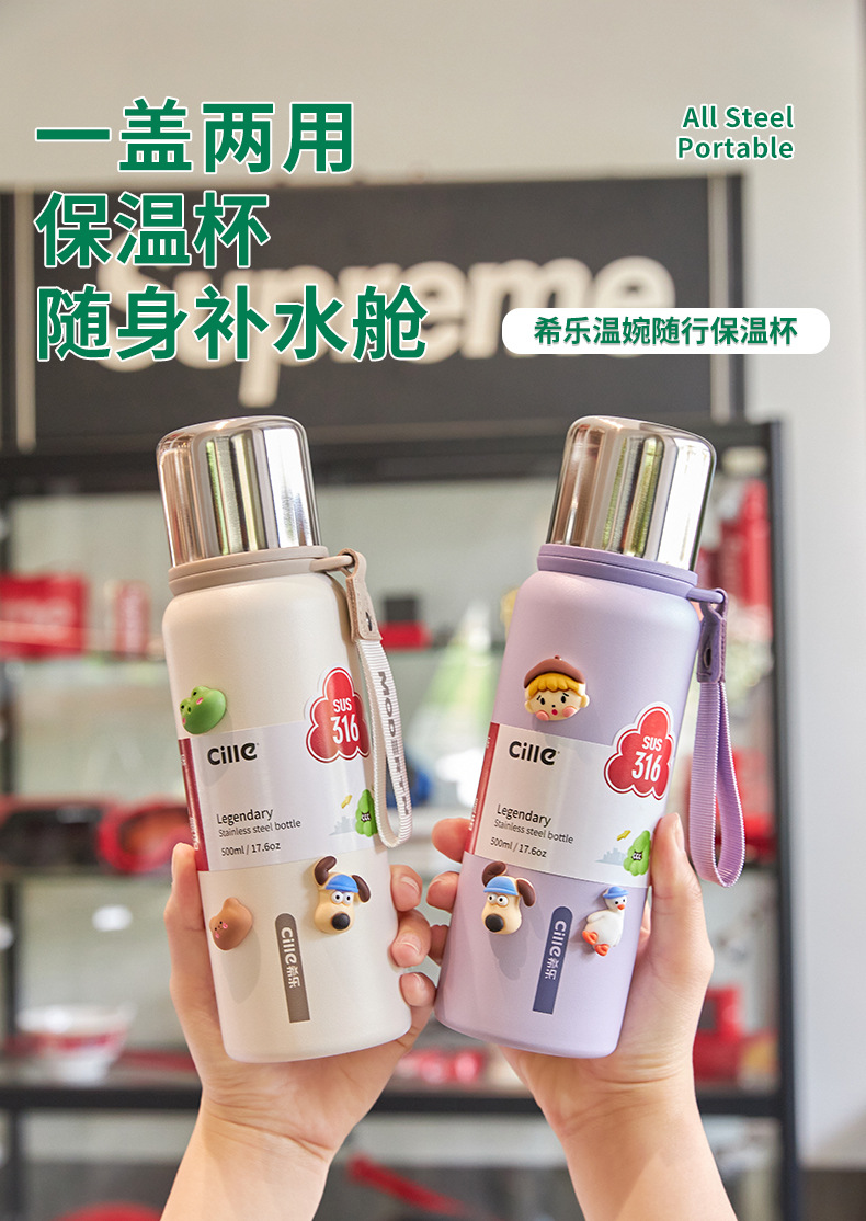 자일 보온병 컵 여성용 대용량 316 스테인레스 스틸 물컵 남자 어린이 초등학교 심플 휴대용 컵 물컵스토어 가기