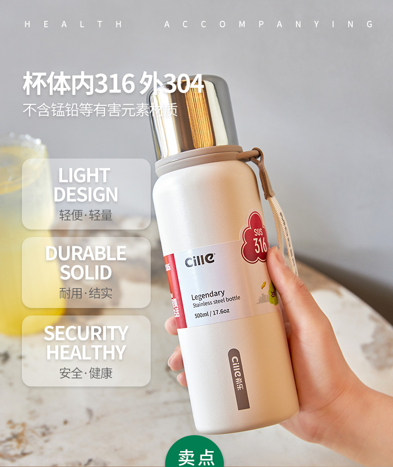 자일 보온병 컵 여성용 대용량 316 스테인레스 스틸 물컵 남자 어린이 초등학교 심플 휴대용 컵 물컵