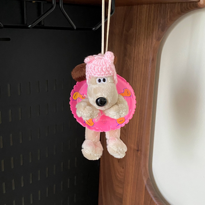 여름 수영 링 수리 후크 가방 펜던트 활 손바닥 귀여운 개 봉제 인형 키 체인 자동차 펜던트
