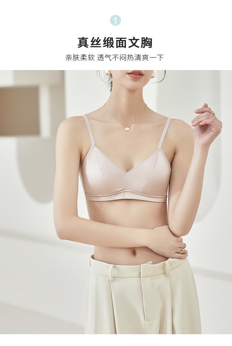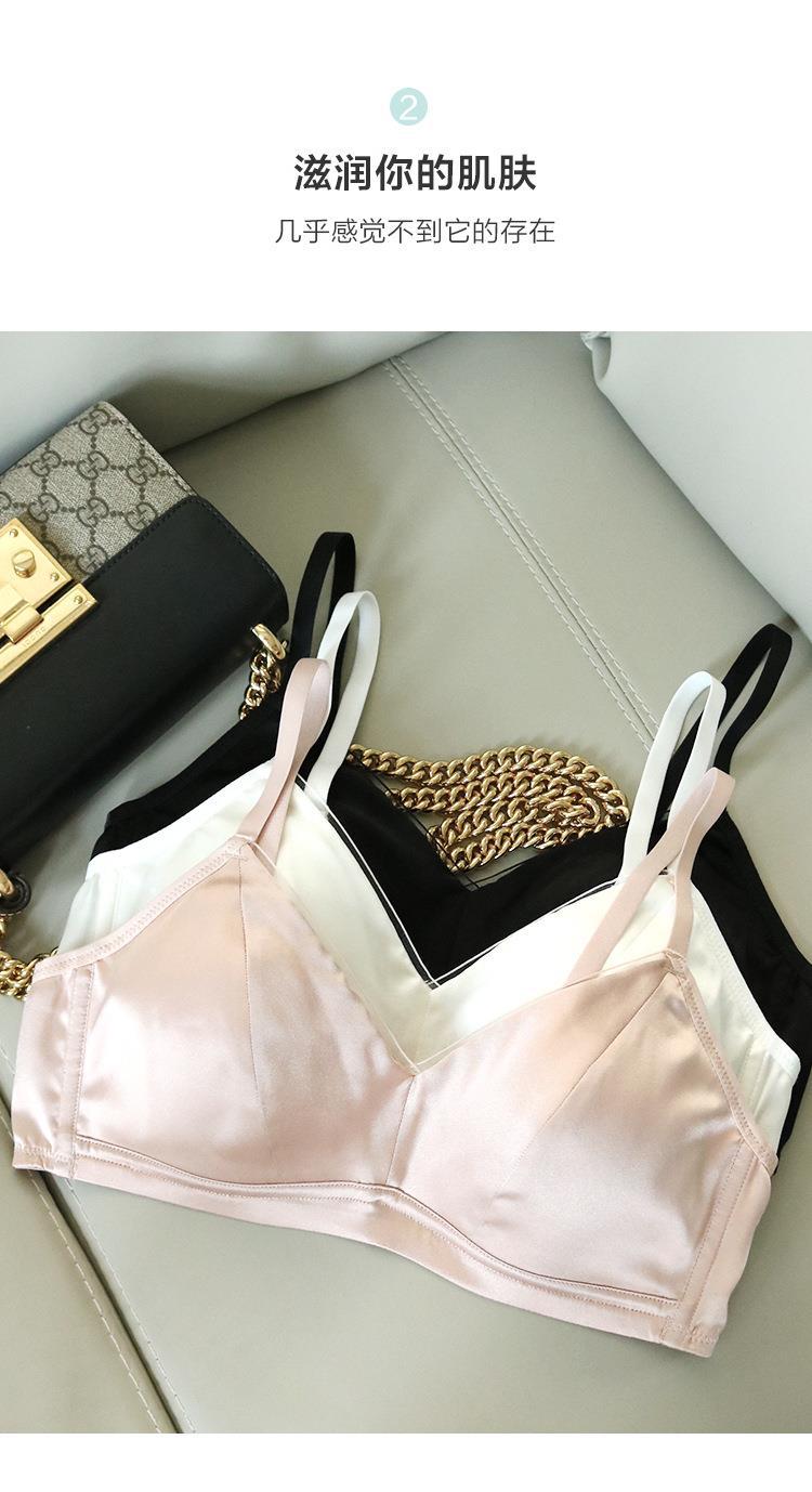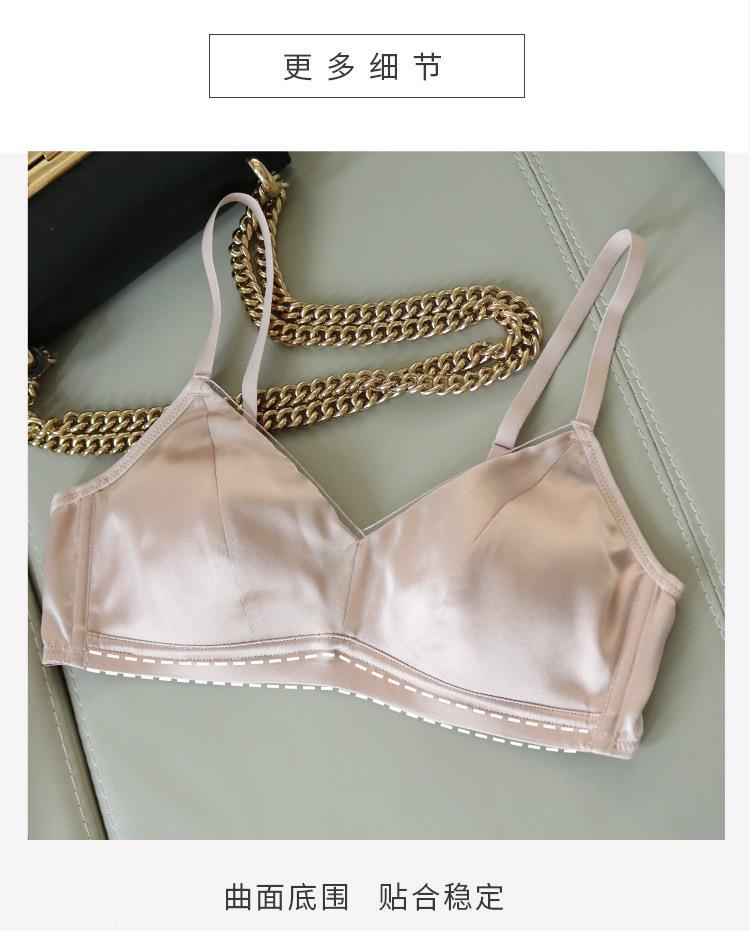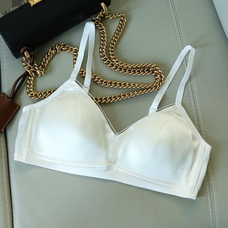 실크 새틴 와이어 프리 브라 프렌치 글로시 멀버리 실크 얇은 편안한 속옷 브라 초박형 푸시업스토어 가기