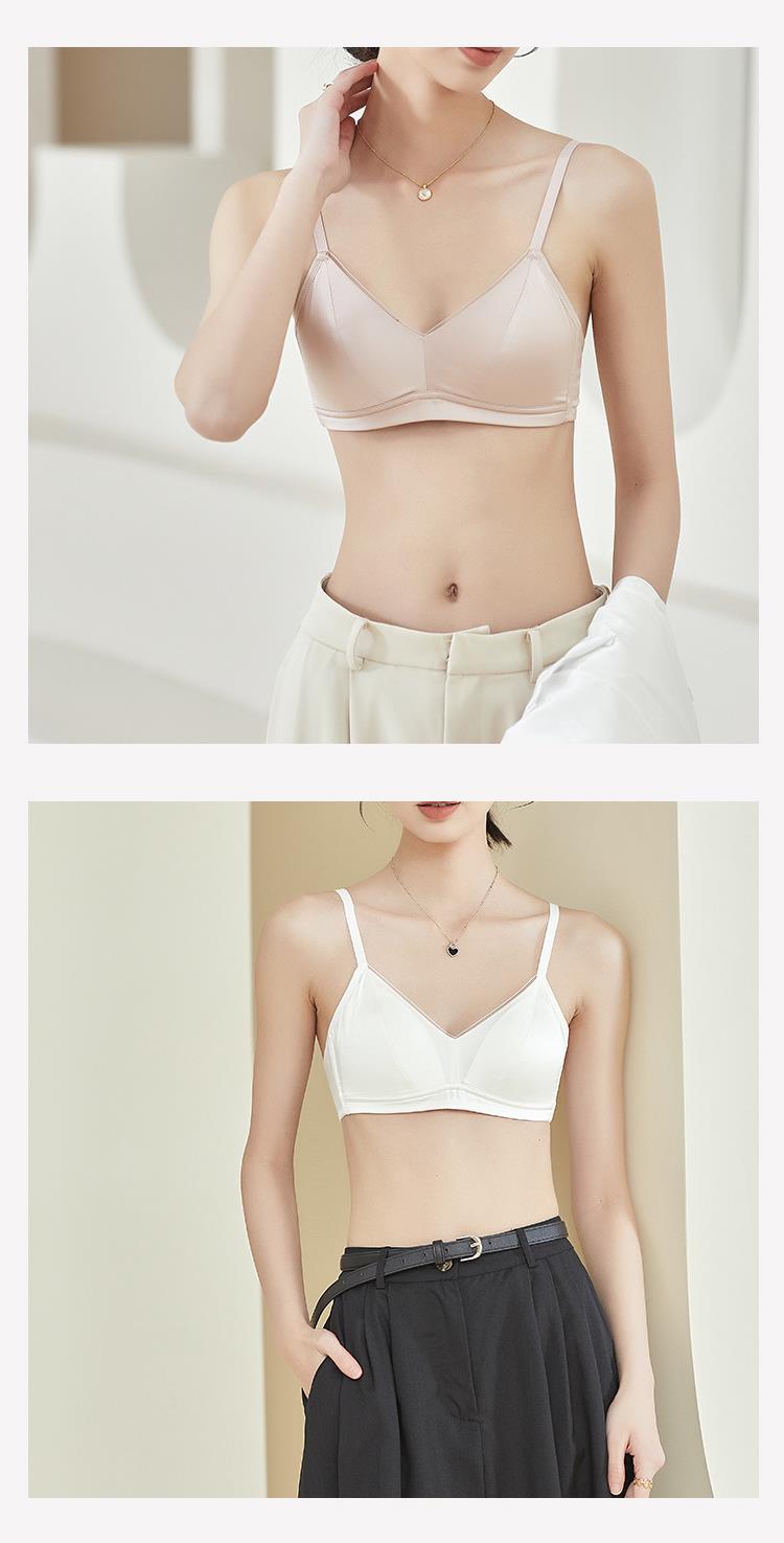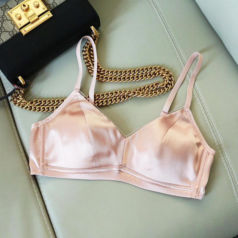 실크 새틴 와이어 프리 브라 프렌치 글로시 멀버리 실크 얇은 편안한 속옷 브라 초박형 푸시업