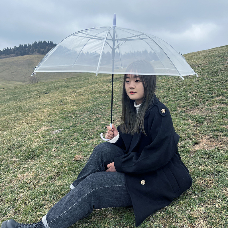 투명 우산 도매 일회용 제조업체 광고 우산 긴 손잡이 로고 인쇄 투명 우산 양용 우산 태양 우산스토어 가기
