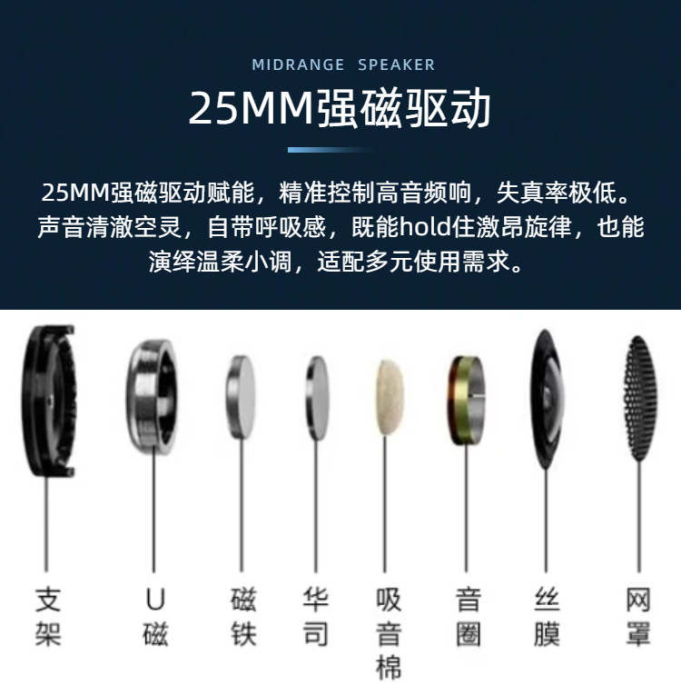 我们听到的音乐是由低音、中音、高音三个频段组成的,不同频段负责不同的声音细节: