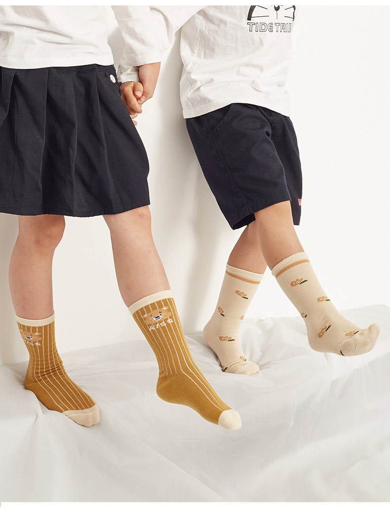 어린이 양말 중간 길이의 귀여운 만화 곰 면 양말 봄 신상 남녀 어린이용 긴 양말스토어 가기