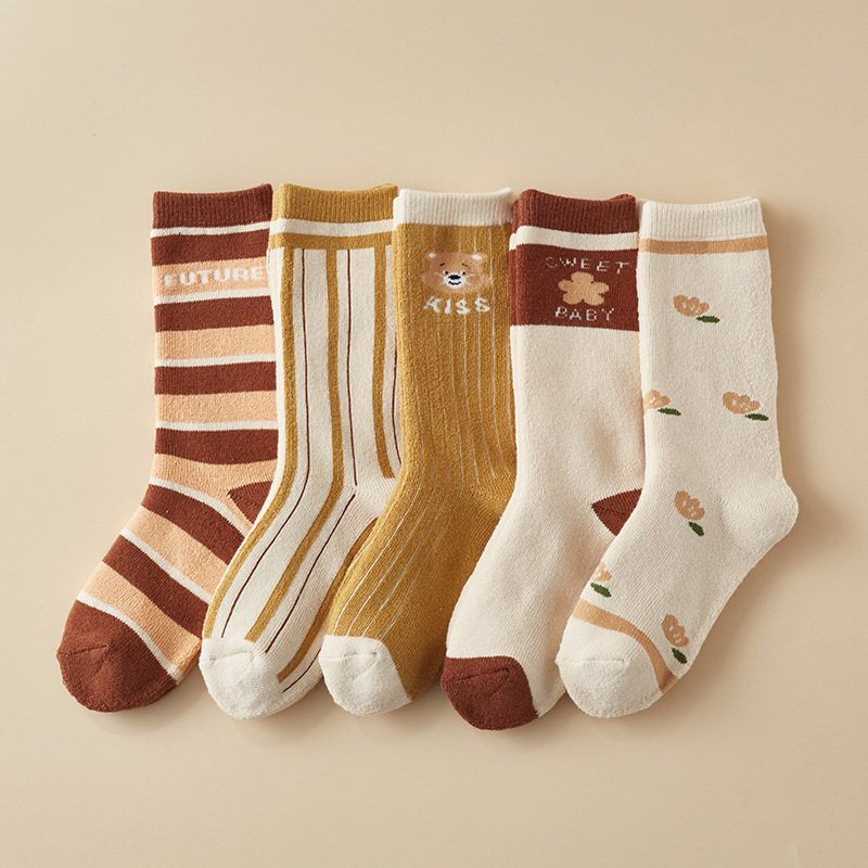 어린이 양말 중간 길이의 귀여운 만화 곰 면 양말 봄 신상 남녀 어린이용 긴 양말