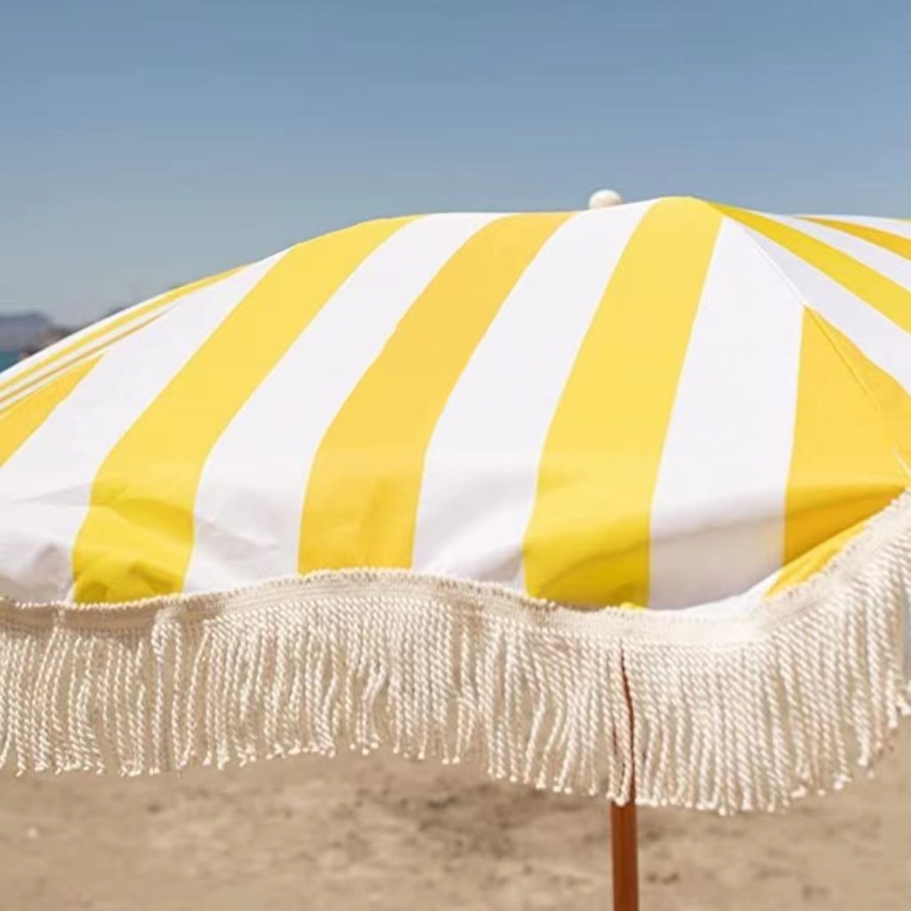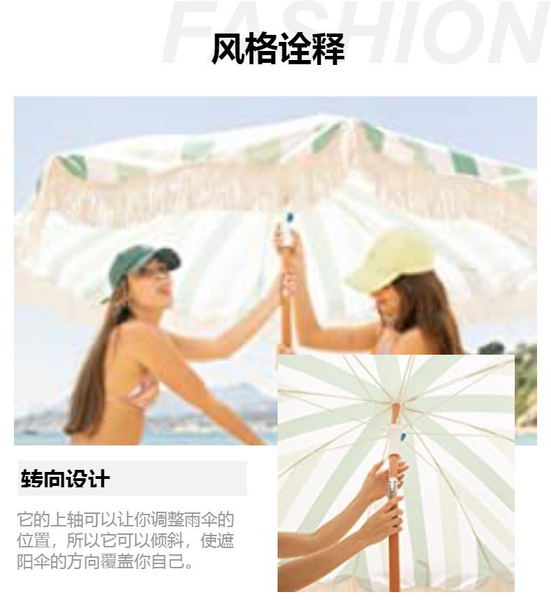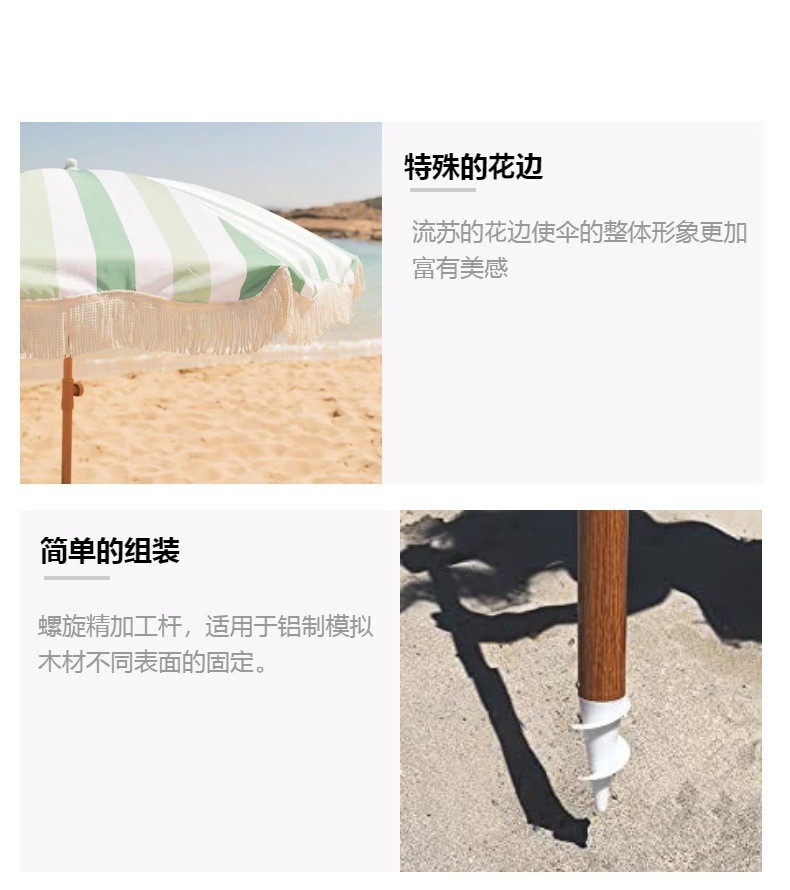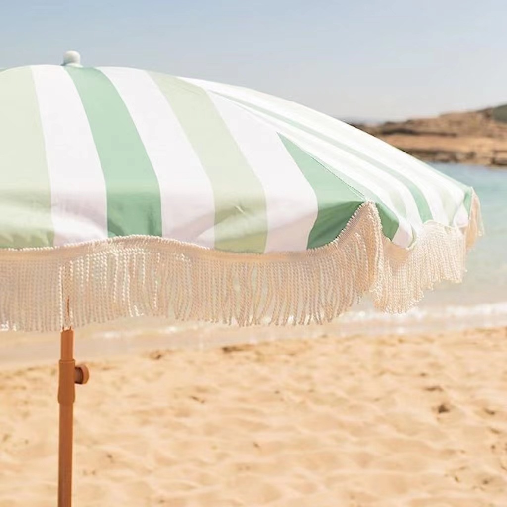 뜨거운 판매 2m 영국 호주 한국 그린 화이트 옐로우 화이트 스트라이프 비치 술 우산 스티어링 태양 보호 야외 태양 우산스토어 가기