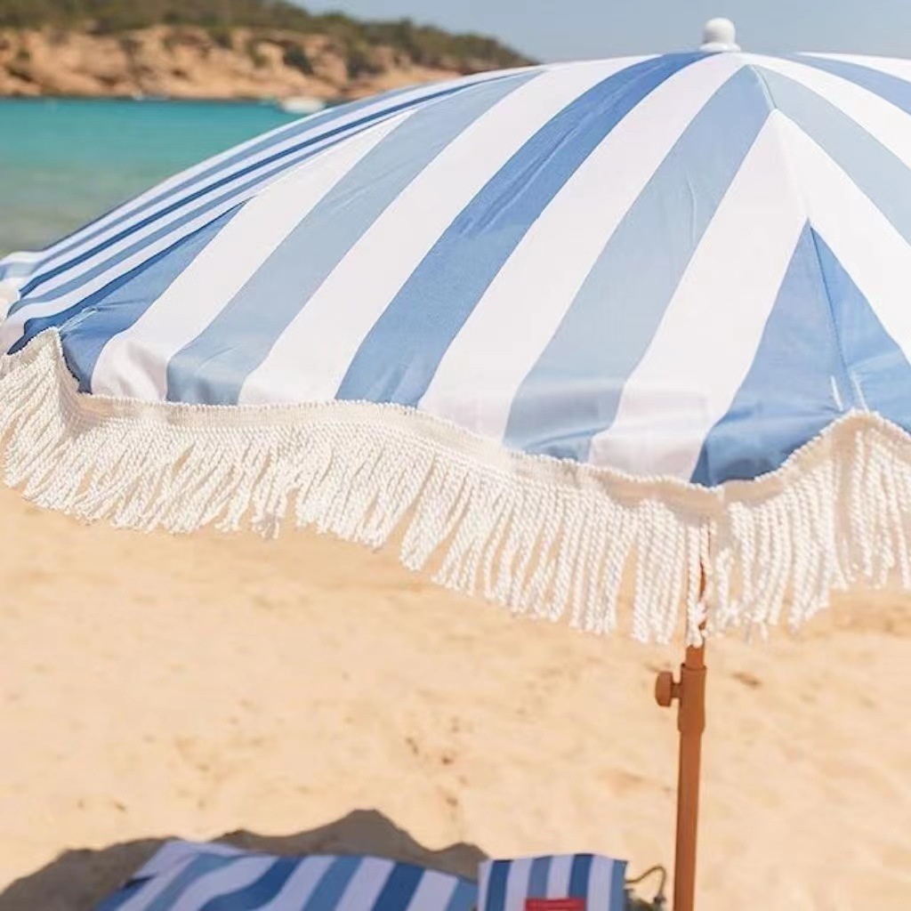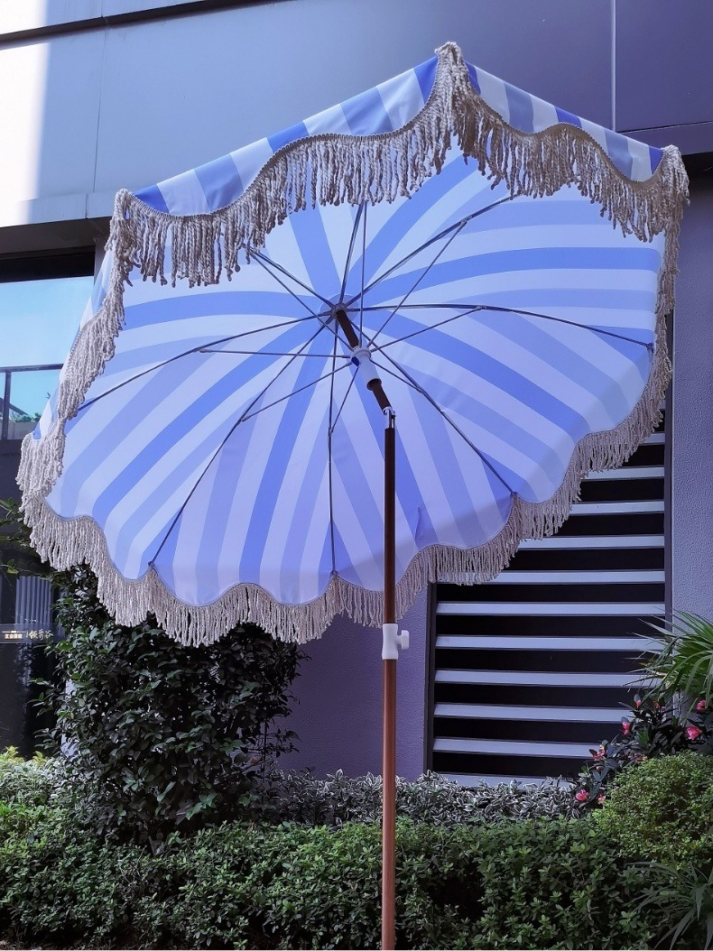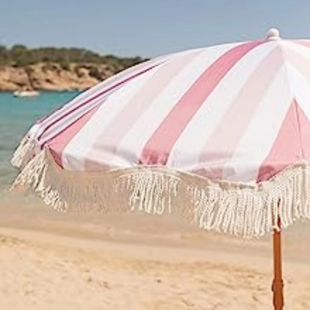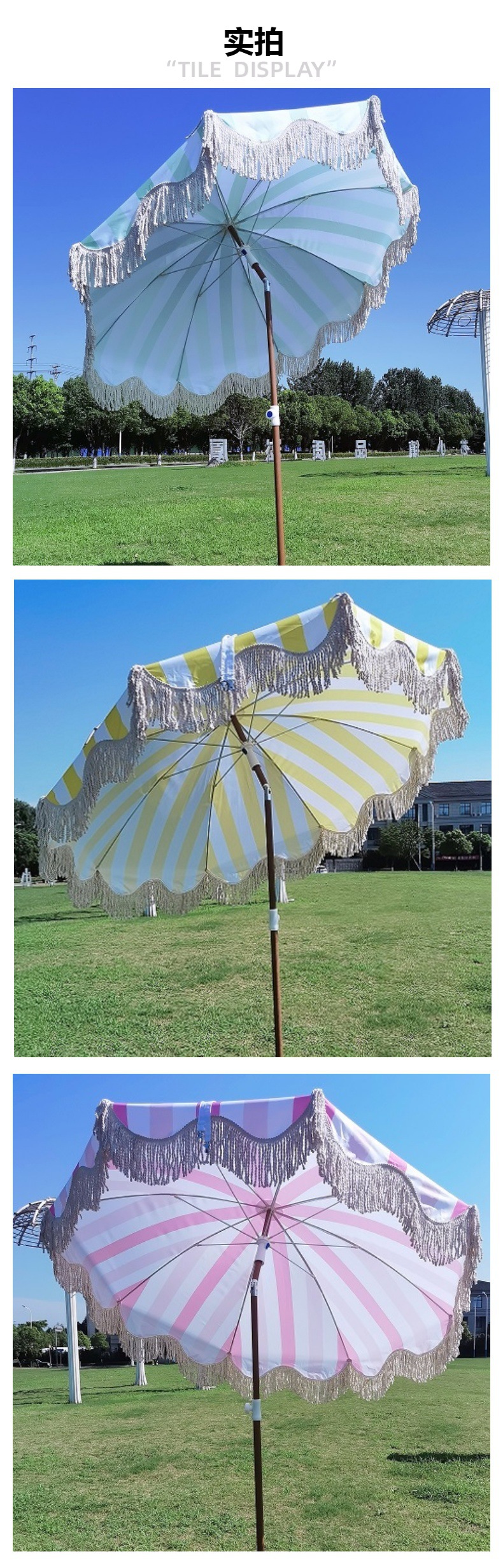뜨거운 판매 2m 영국 호주 한국 그린 화이트 옐로우 화이트 스트라이프 비치 술 우산 스티어링 태양 보호 야외 태양 우산스토어 가기