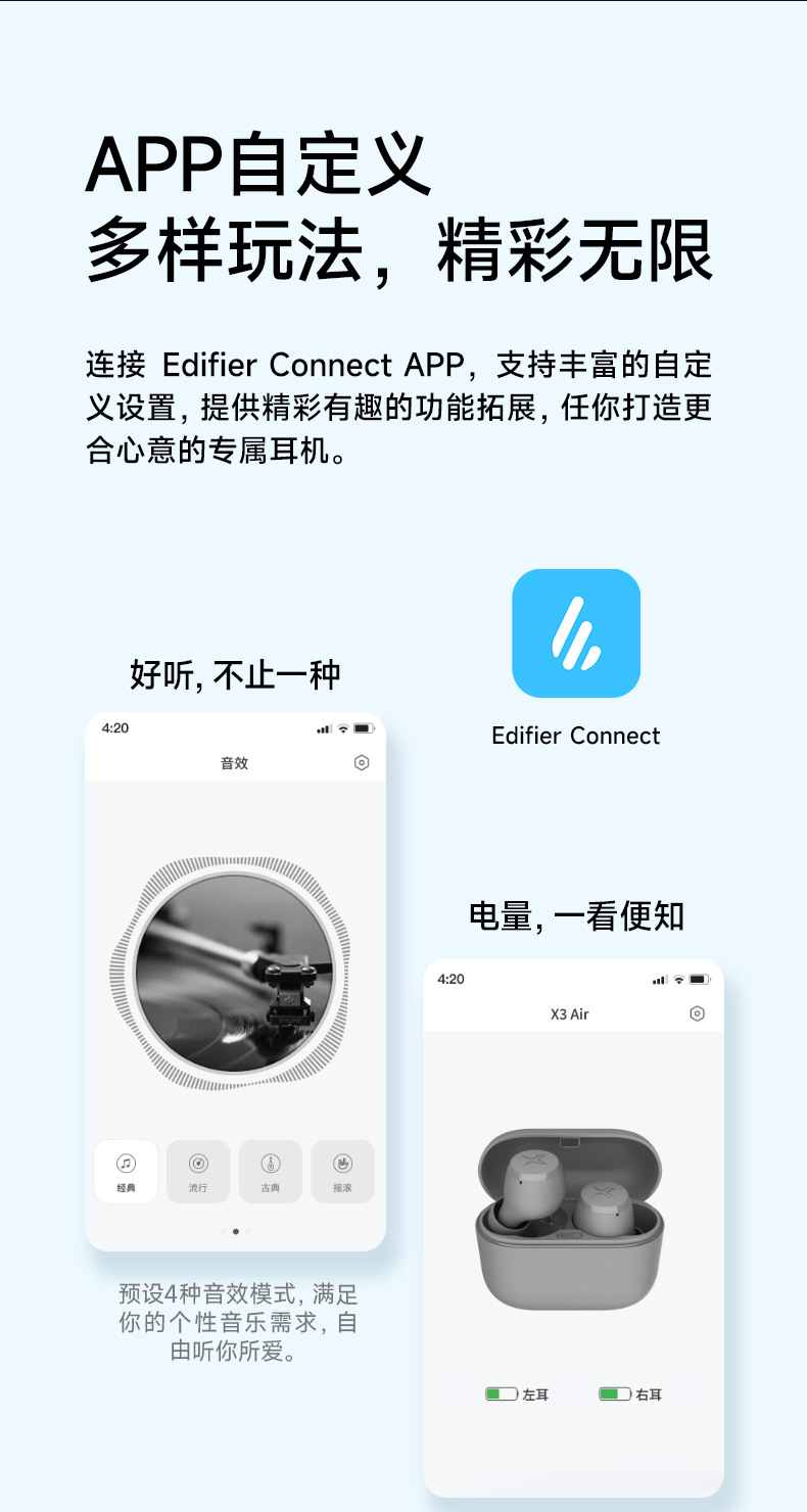로버 (EDIFIER)X3 에어 진정한 무선 스테레오 블루투스 헤드셋 헤드폰 도매스토어 가기