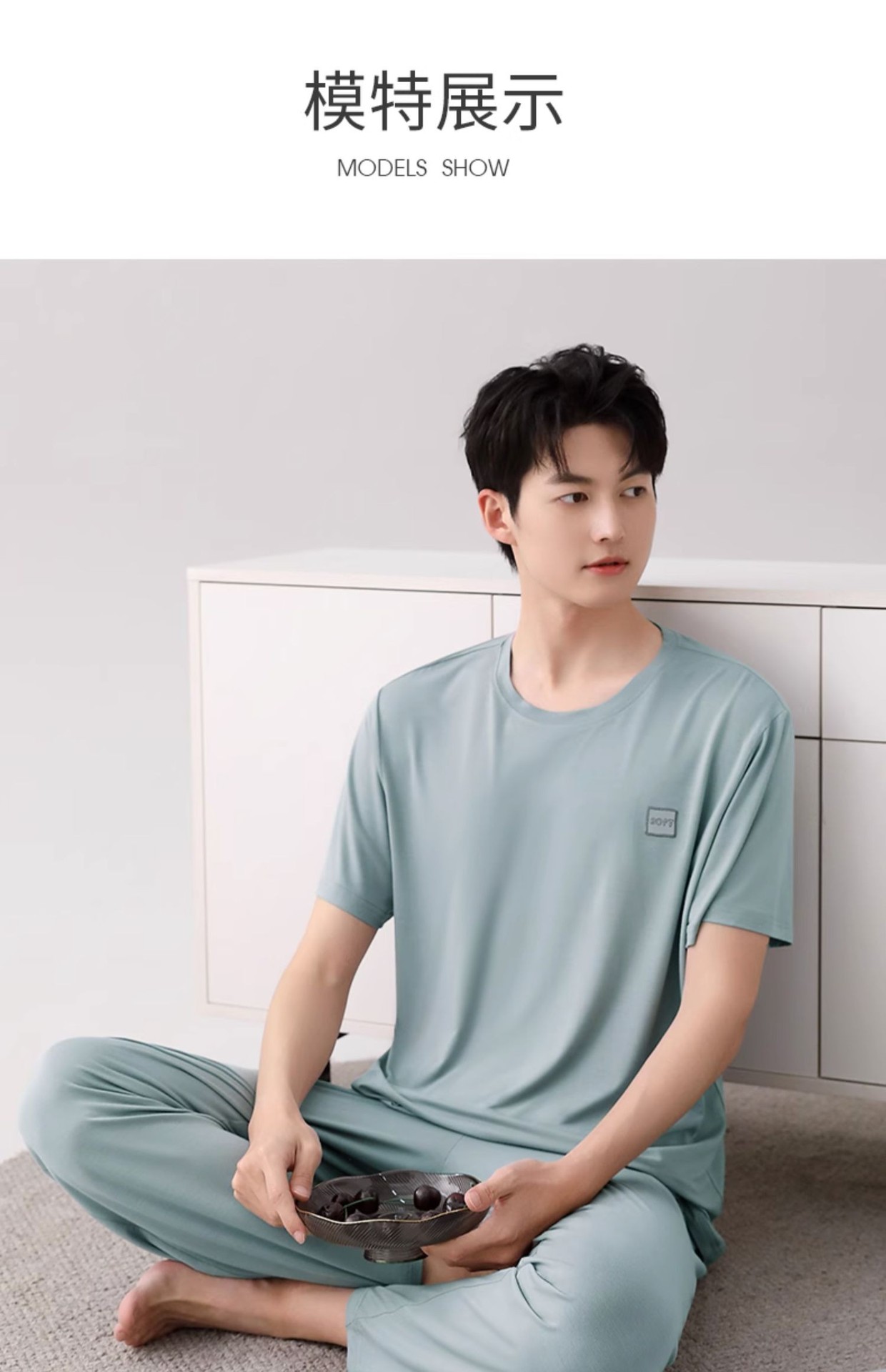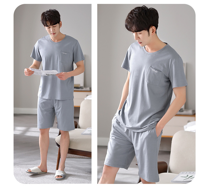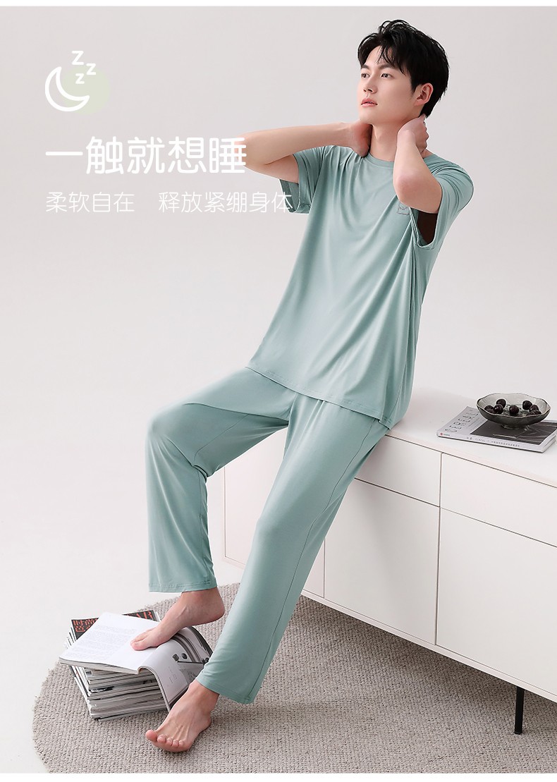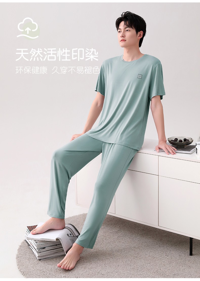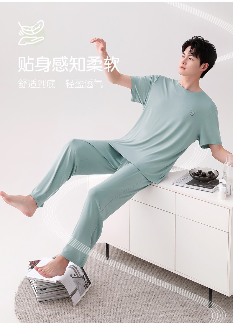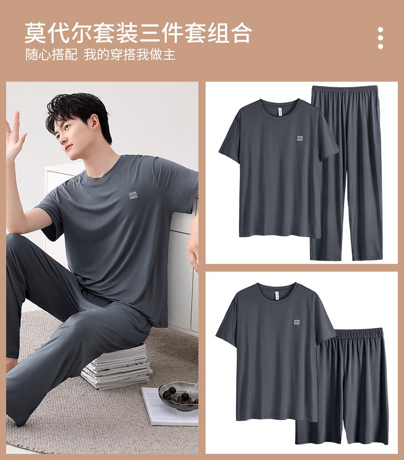 남성용 잠옷 여름용 얇은 아이스 실크 면 반팔 반바지 긴바지 3종 세트 여름용 아이스 실크 시원한 느낌의 홈웨어 남성용스토어 가기