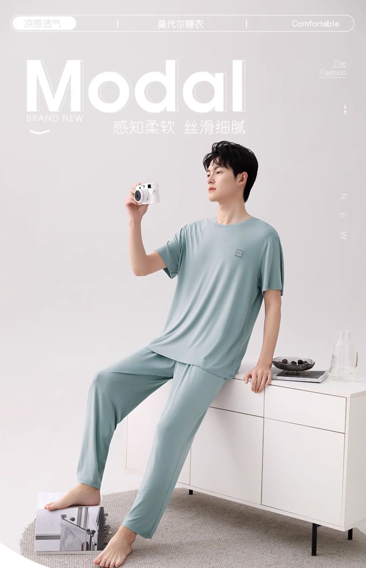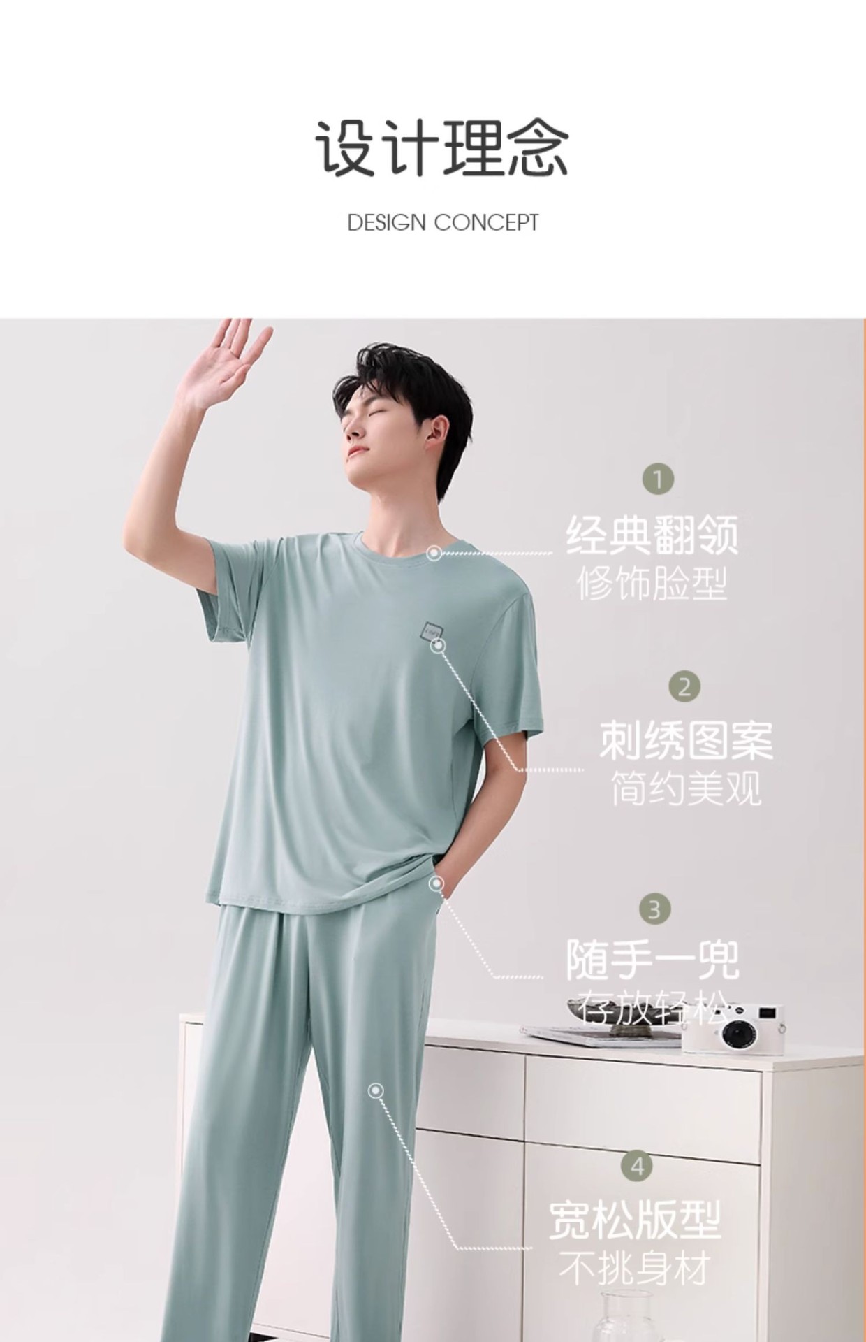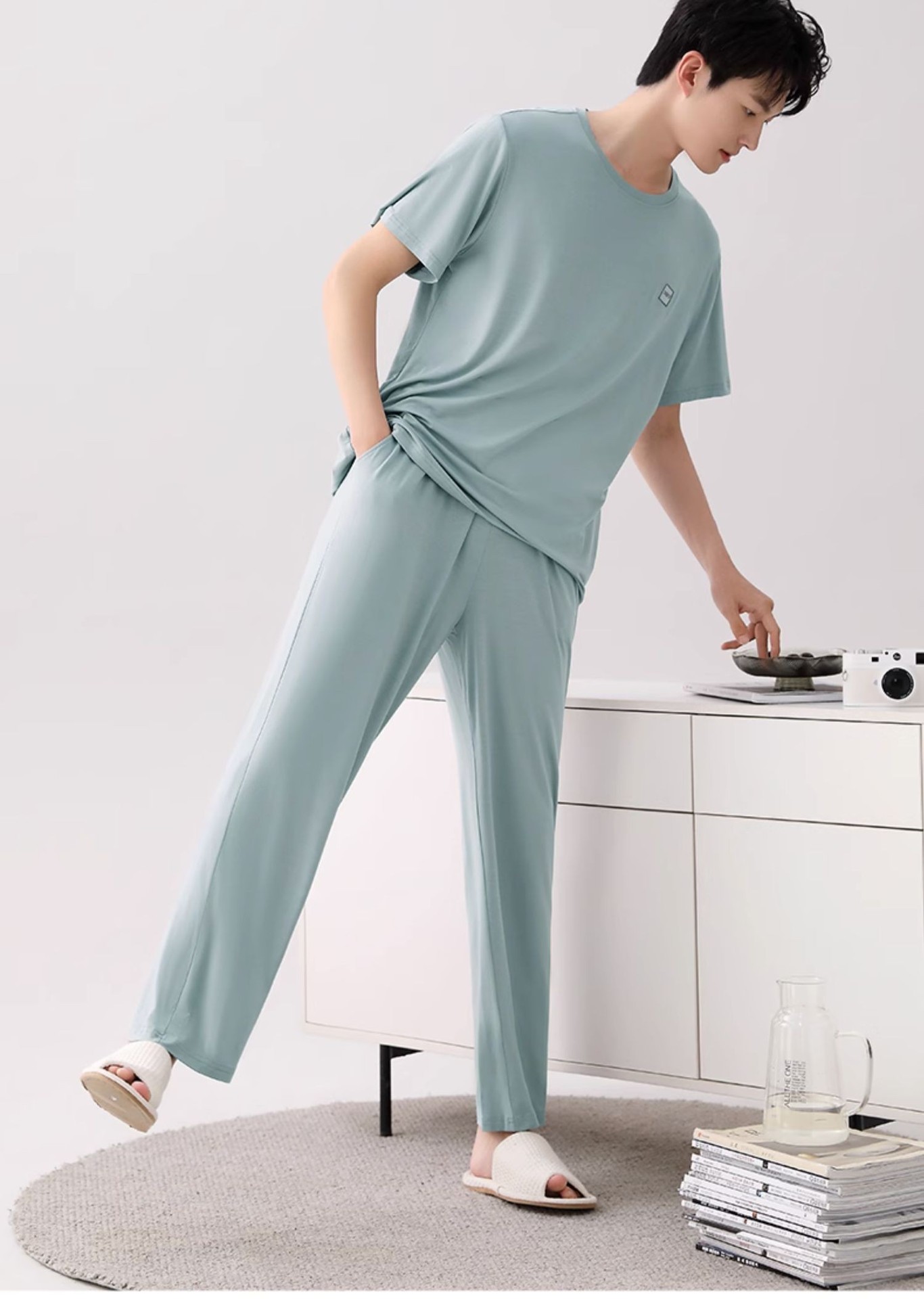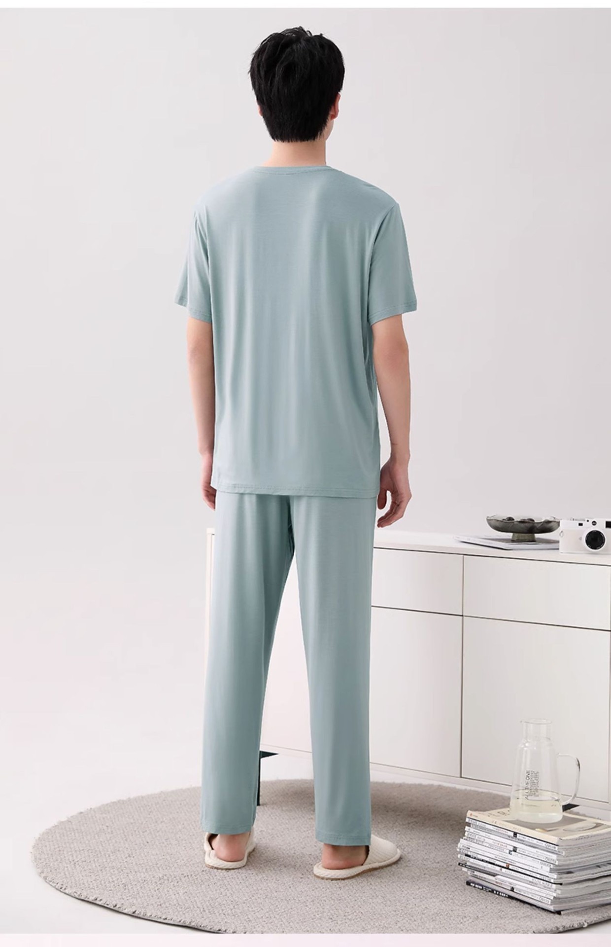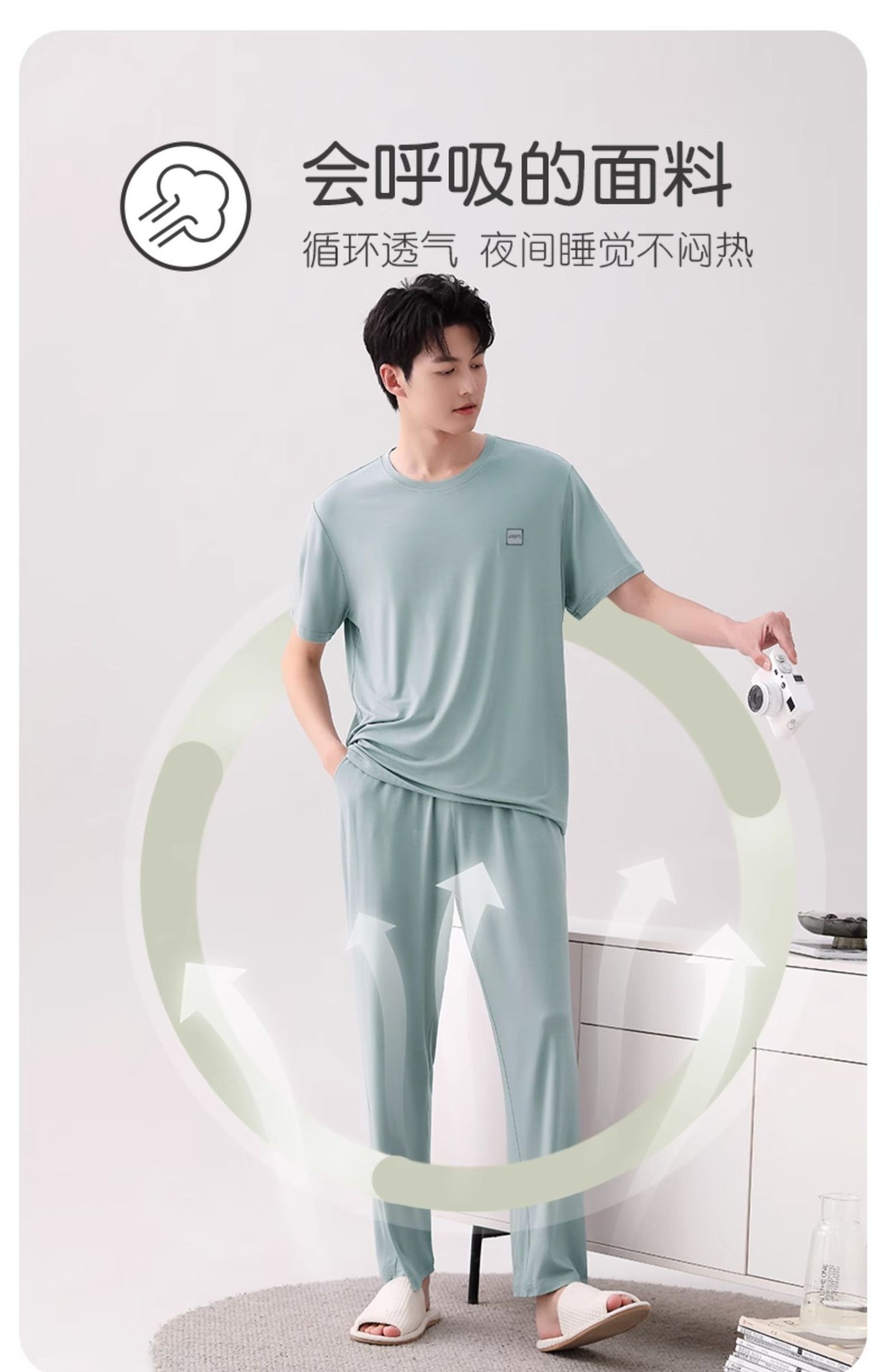 남성용 잠옷 여름용 얇은 아이스 실크 면 반팔 반바지 긴바지 3종 세트 여름용 아이스 실크 시원한 느낌의 홈웨어 남성용스토어 가기