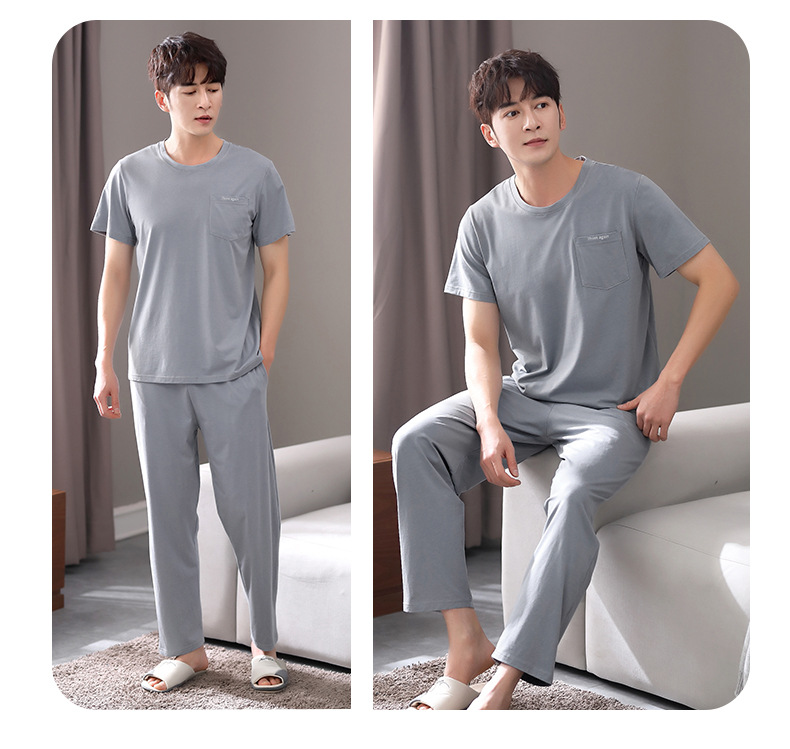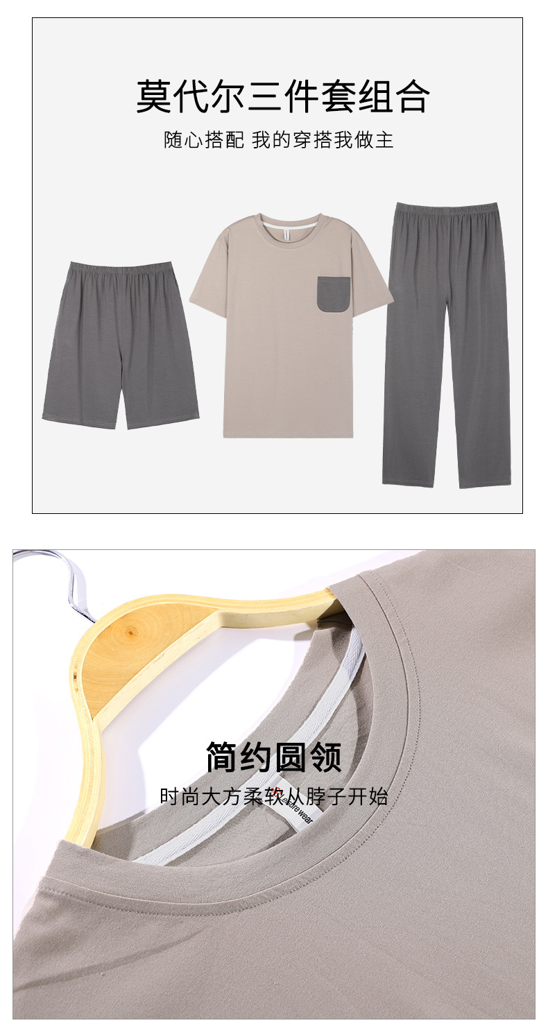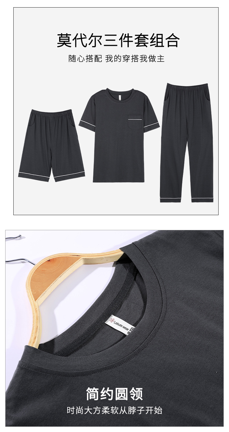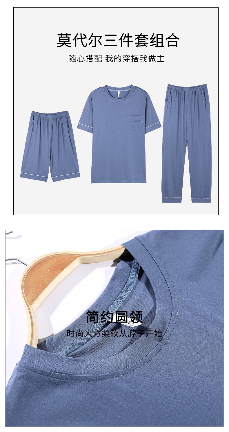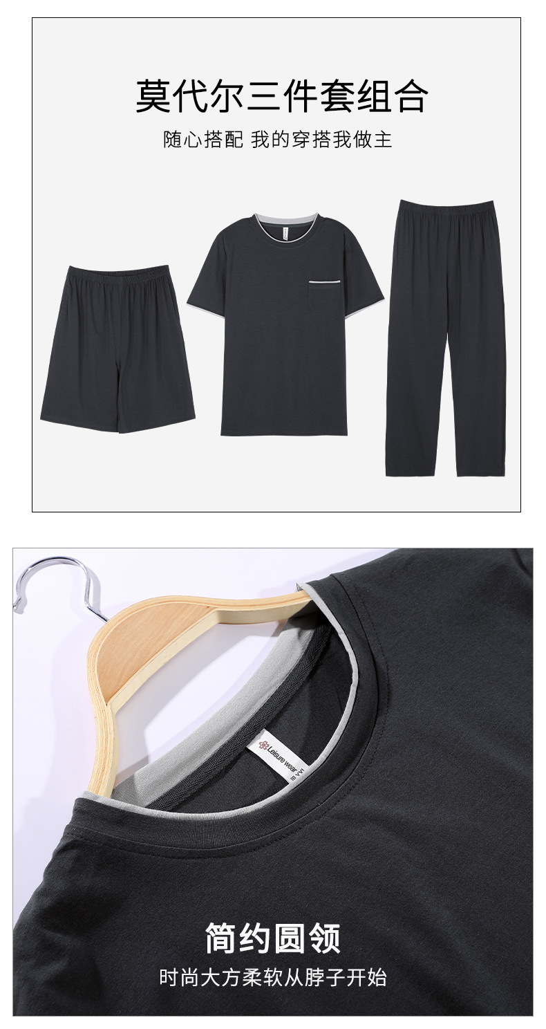 남성용 잠옷 여름용 얇은 아이스 실크 면 반팔 반바지 긴바지 3종 세트 여름용 아이스 실크 시원한 느낌의 홈웨어 남성용