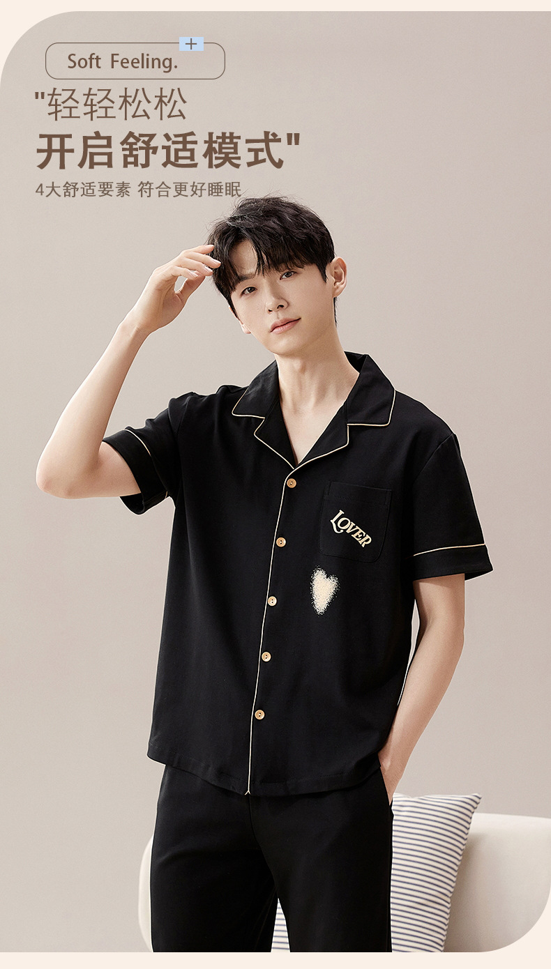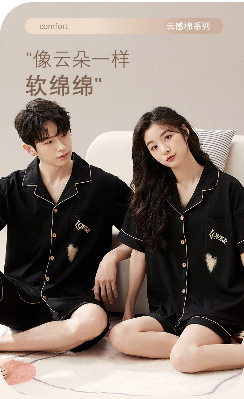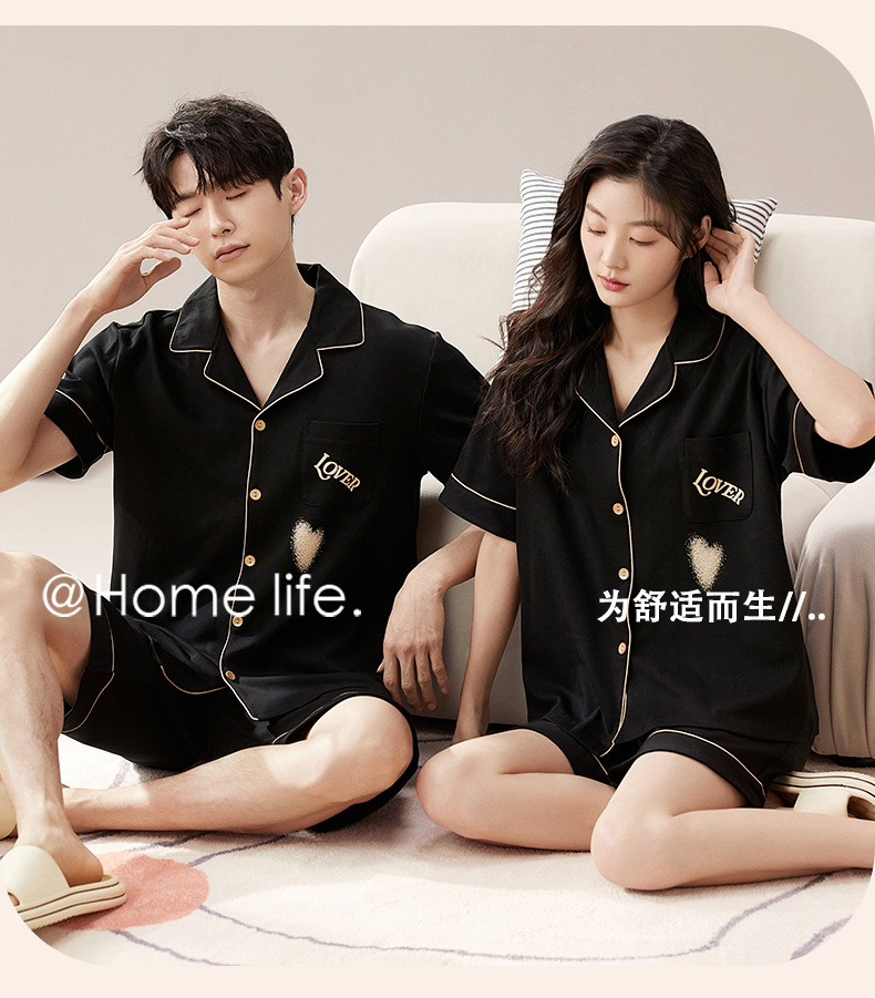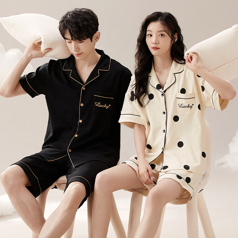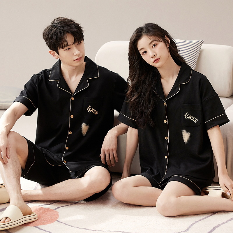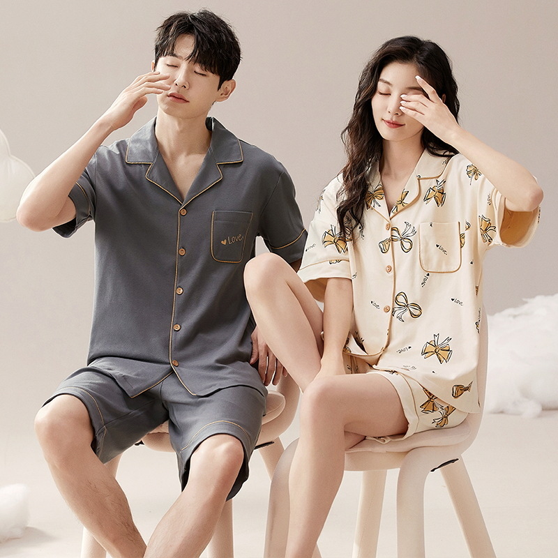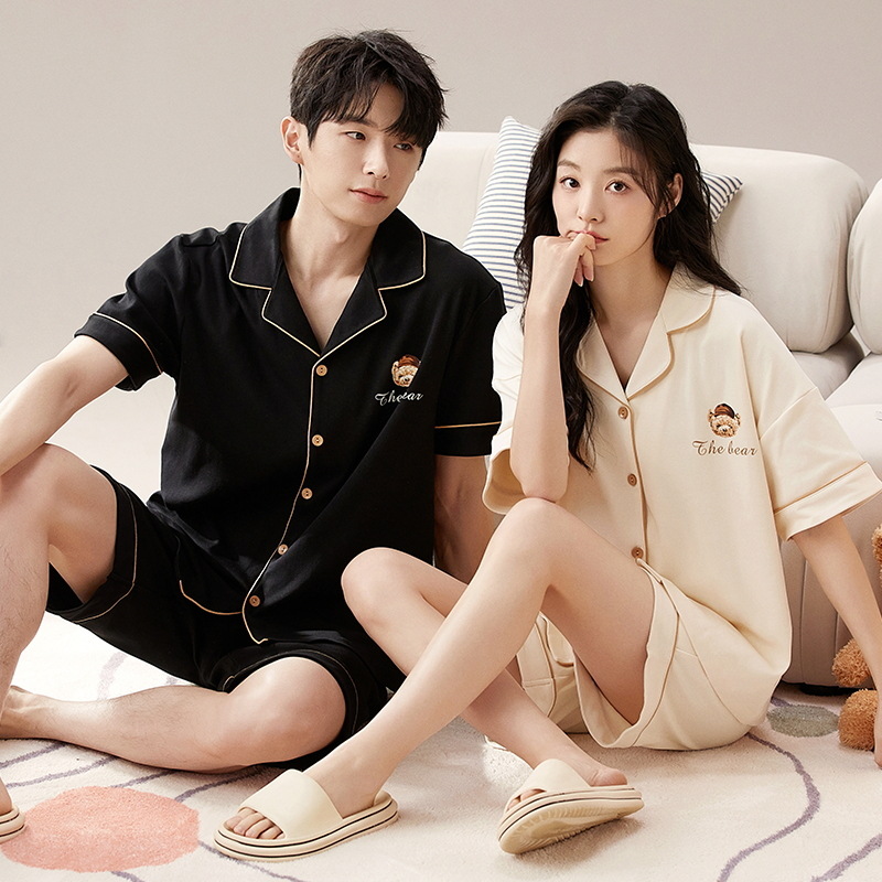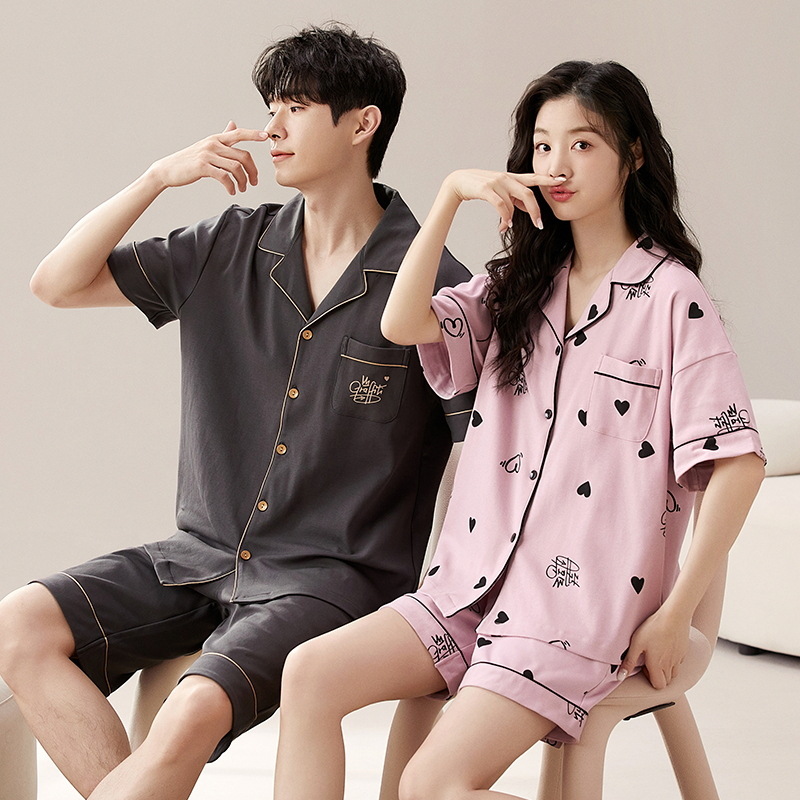 2024 여름 새 커플 파자마 반팔 반바지 세트 코튼 여름 남녀 캐주얼 루즈 홈 의류스토어 가기