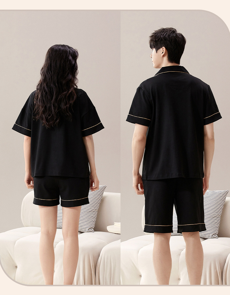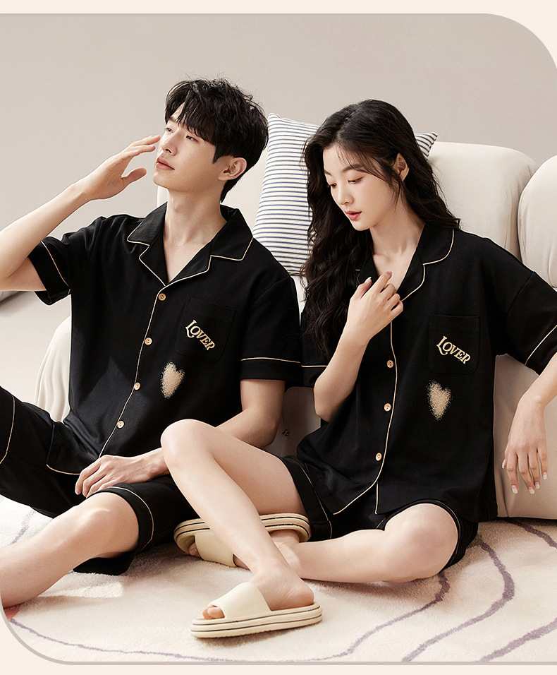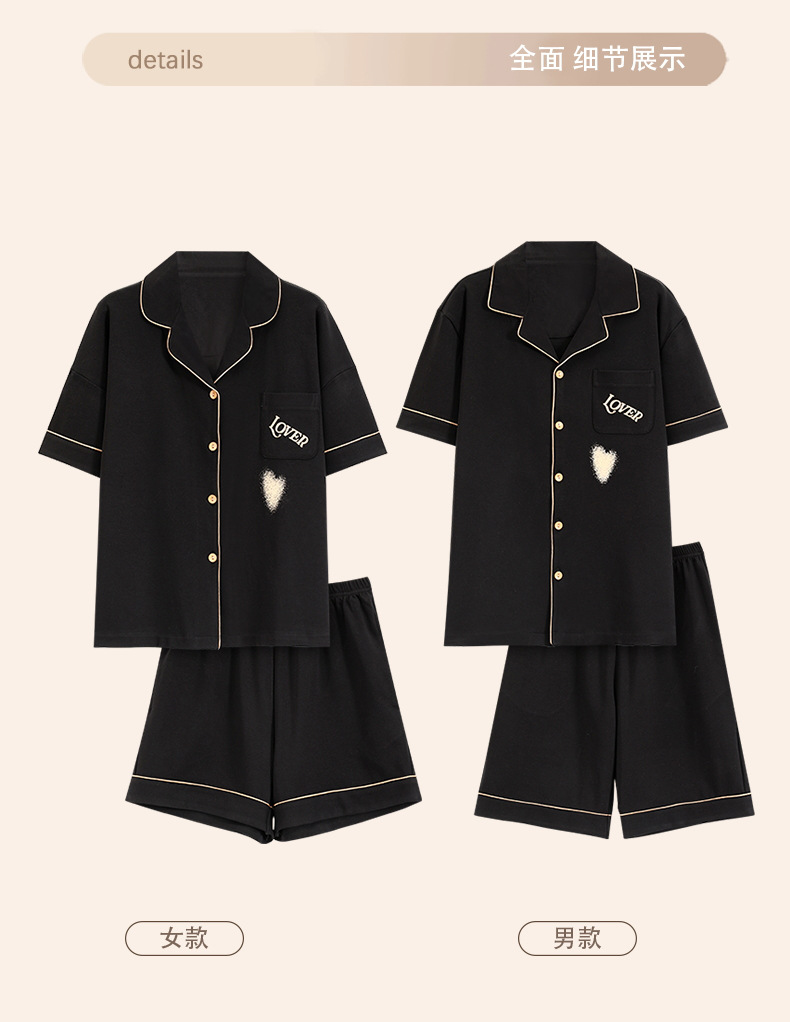 2024 여름 새 커플 파자마 반팔 반바지 세트 코튼 여름 남녀 캐주얼 루즈 홈 의류