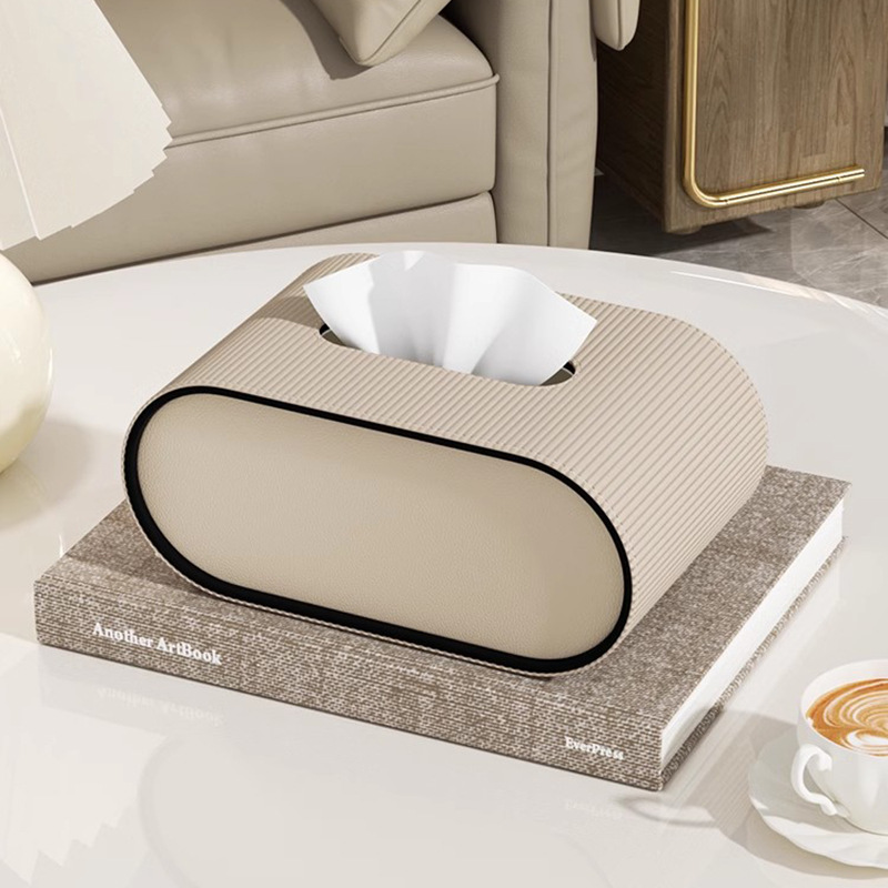 • 밀크티 컬러 로마 기둥 타원형 티슈 박스