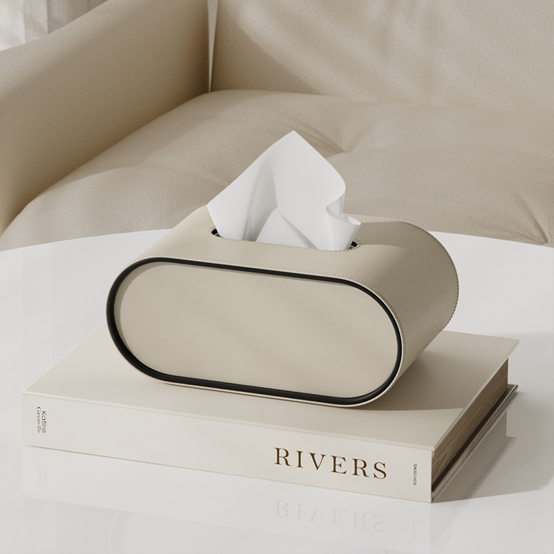 • 타원형 티슈 박스 - 크림 화이트