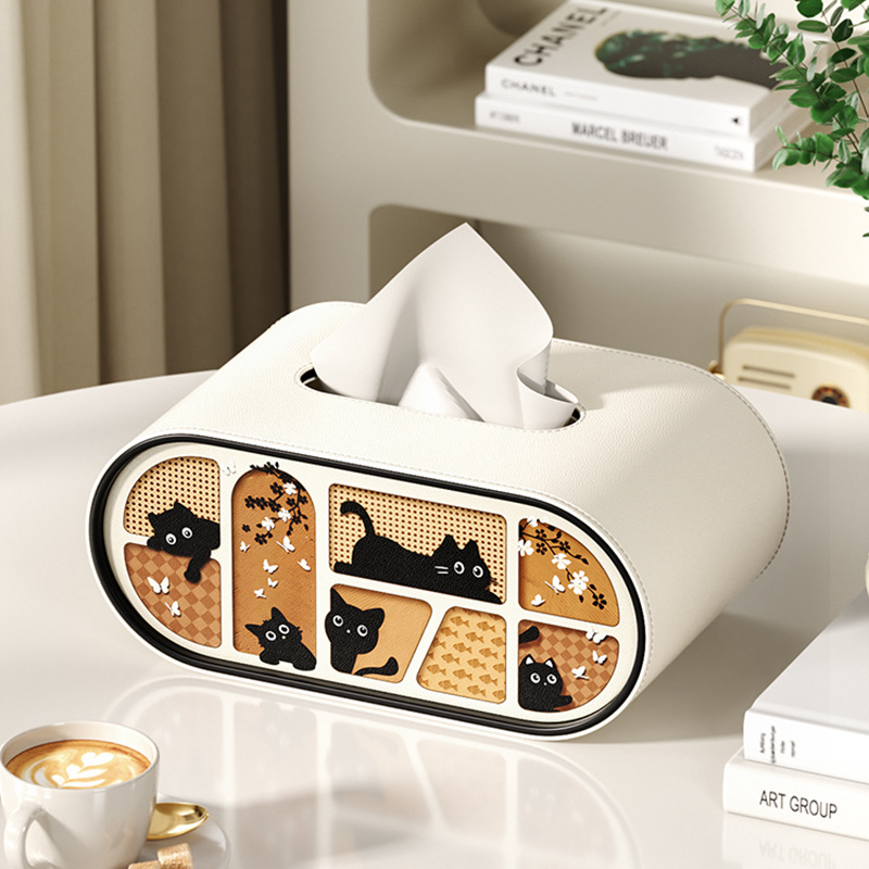 • [신상품] 밀크티 컬러 고양이 타원형 티슈 박스