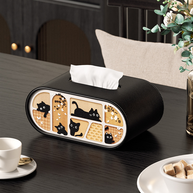 • [신상품] 흑백 고양이 타원형 티슈 박스