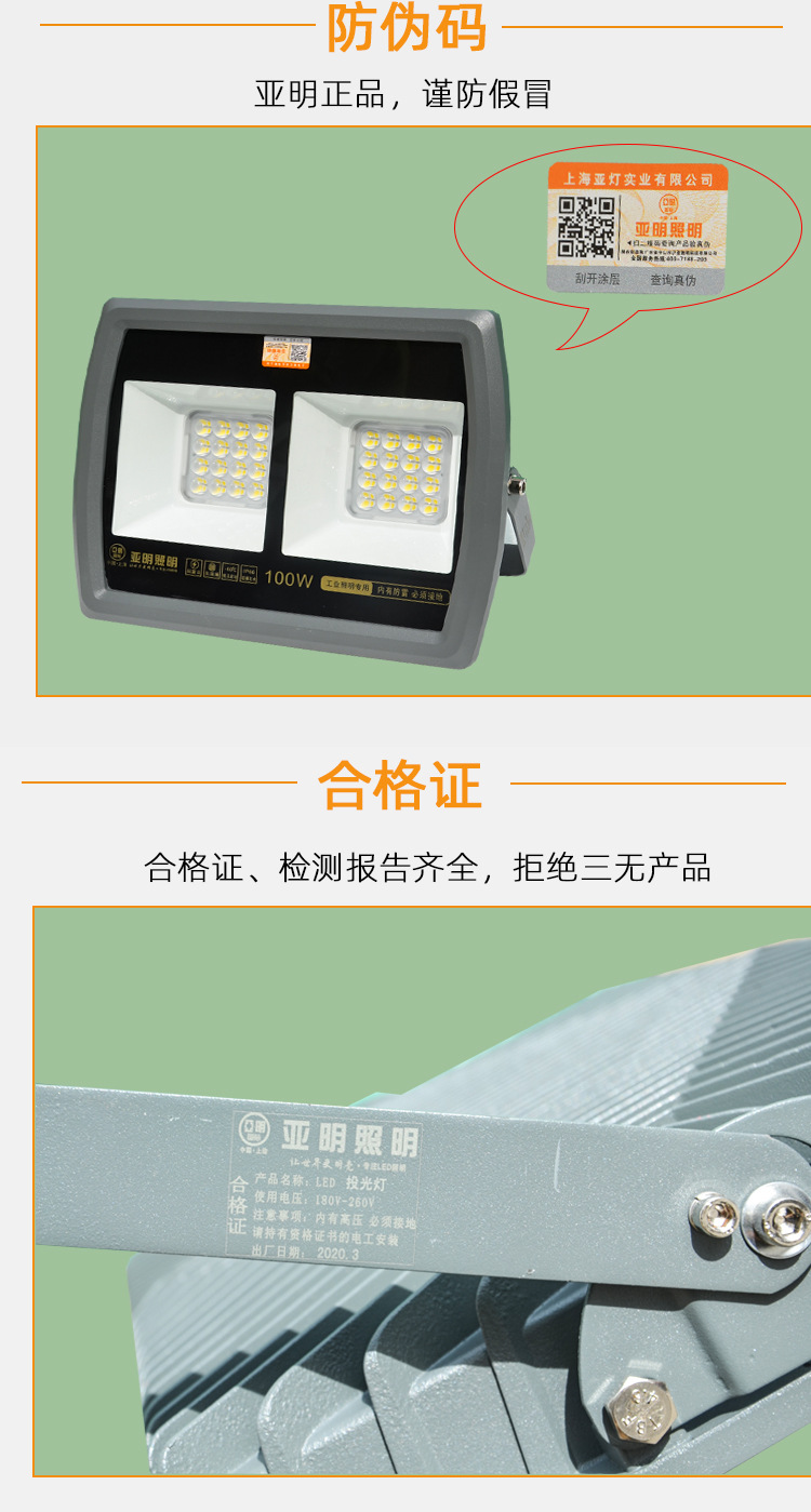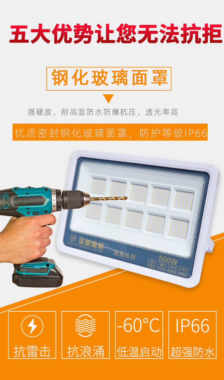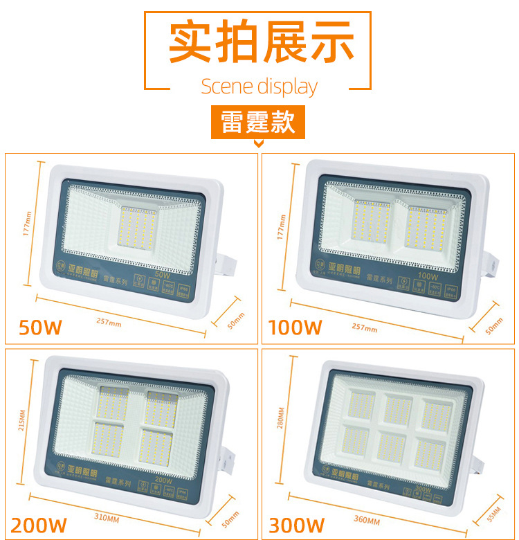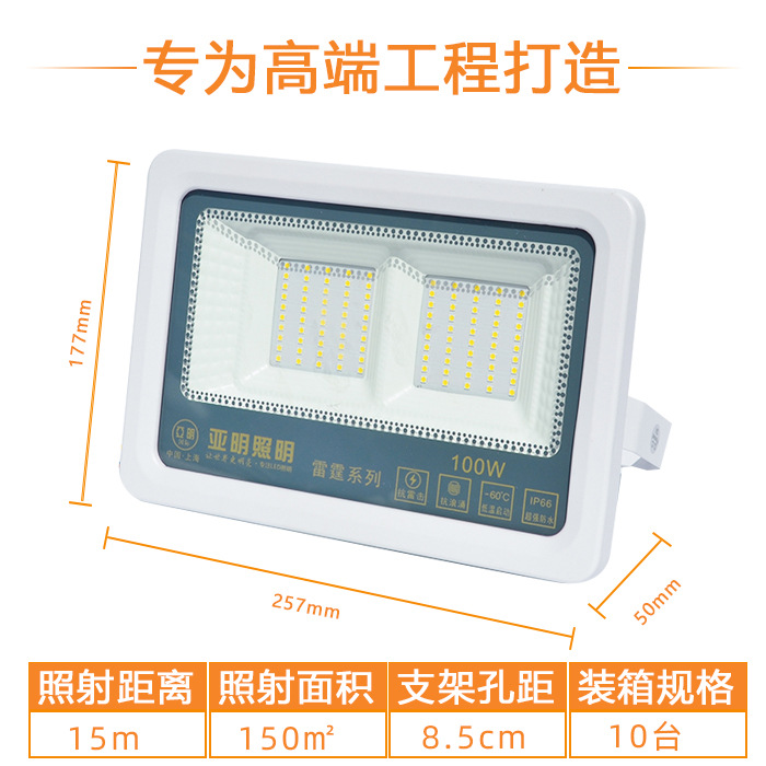 상하이 Yaming LED 투광 조명 100W 실외 조명 조명 공장 광고 프로젝션 조명 야외 방수 천둥