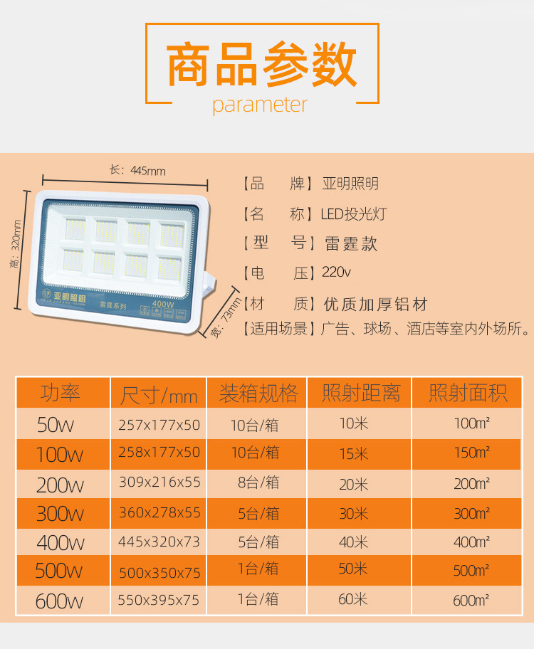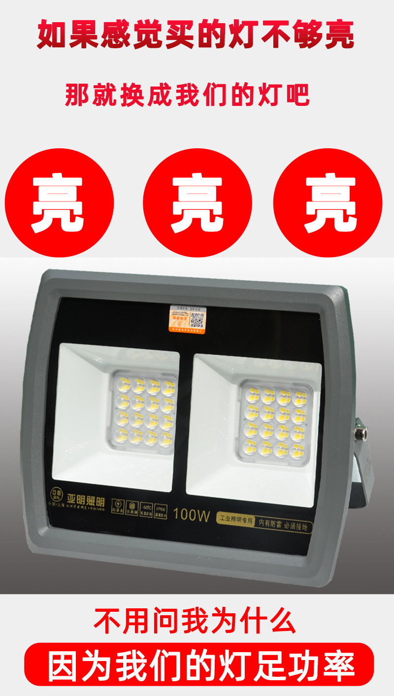 상하이 Yaming LED 투광 조명 100W 실외 조명 조명 공장 광고 프로젝션 조명 야외 방수 천둥스토어 가기