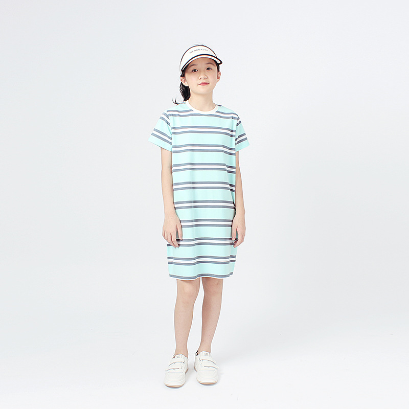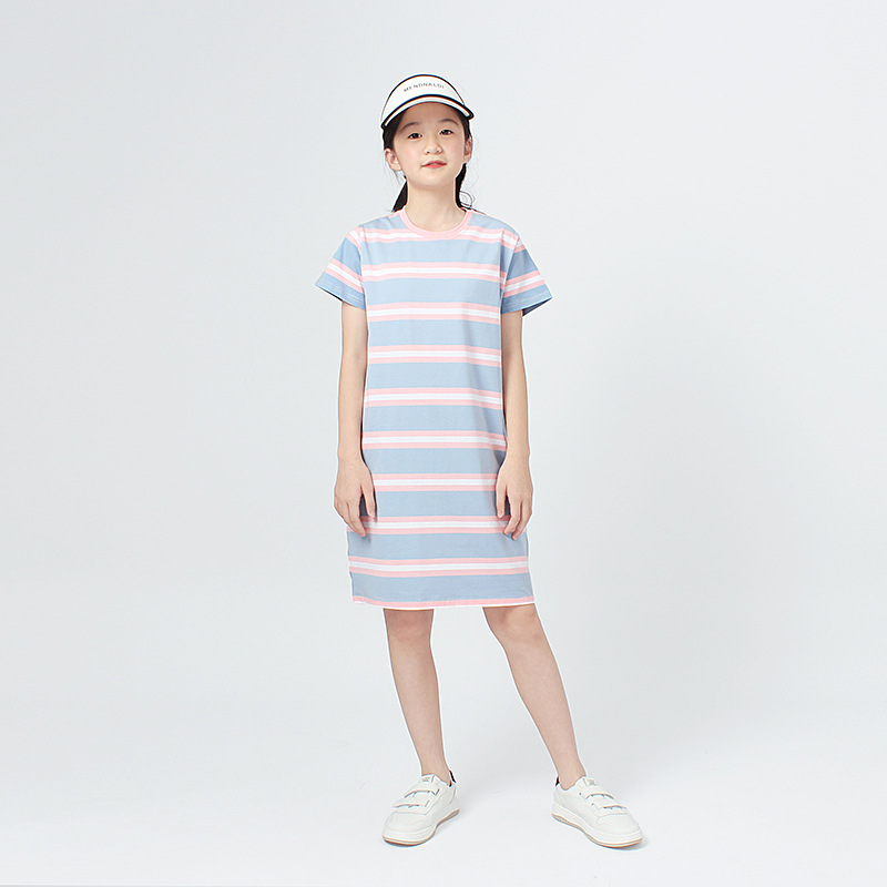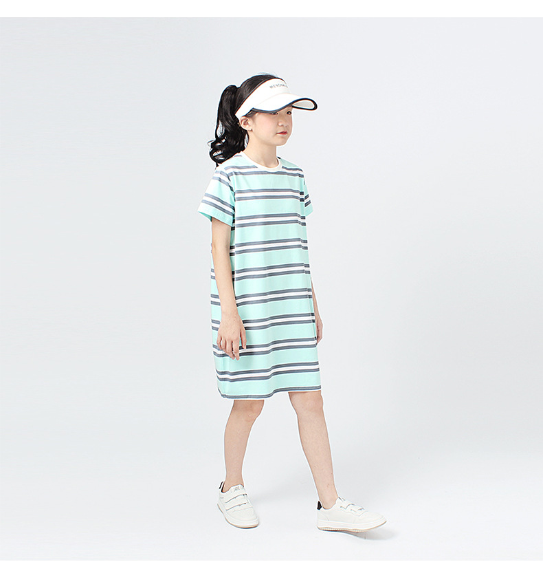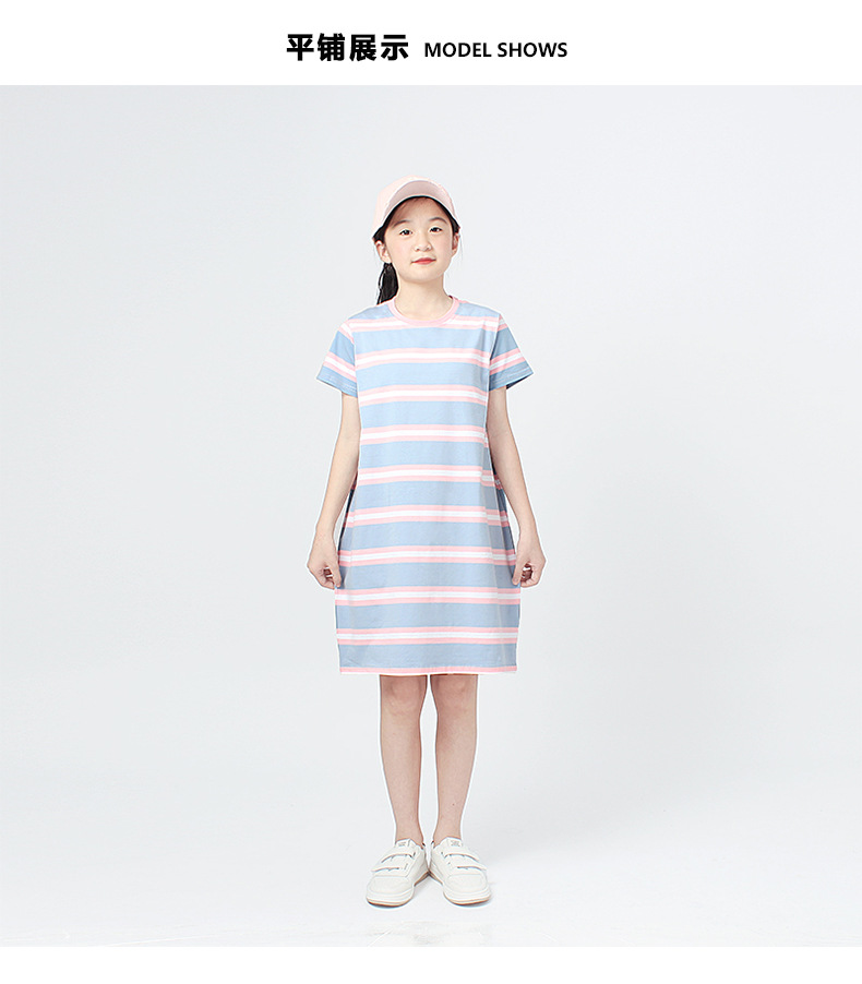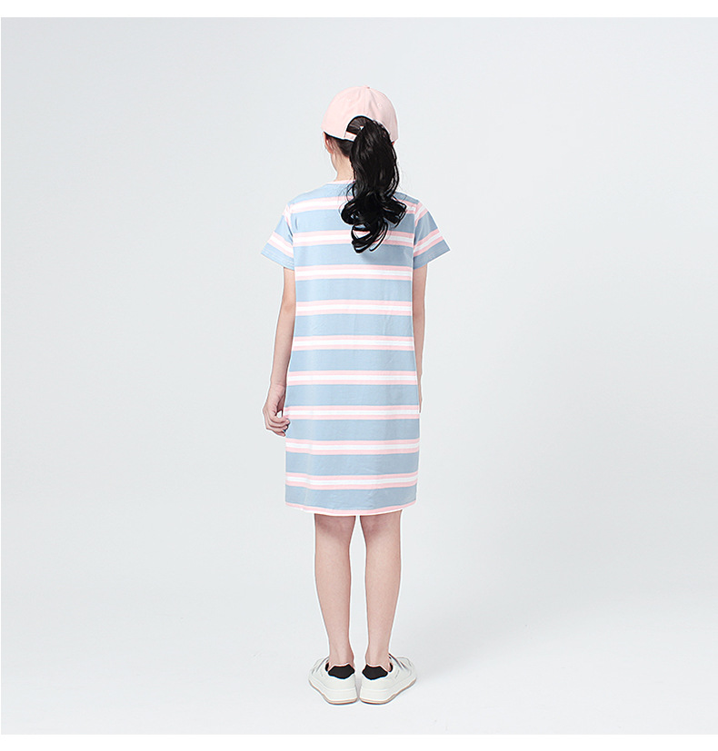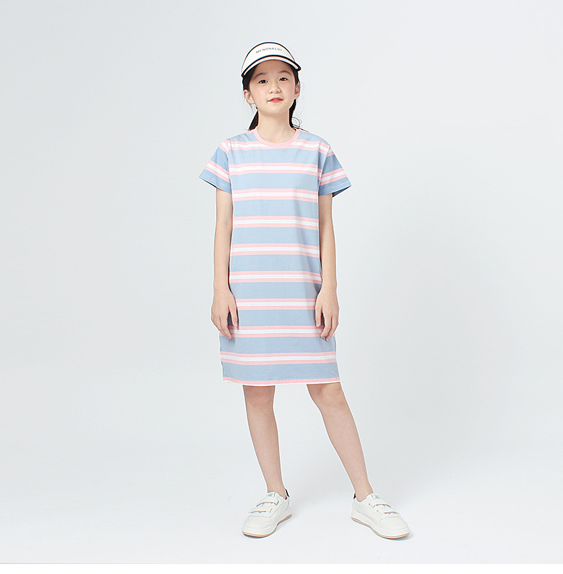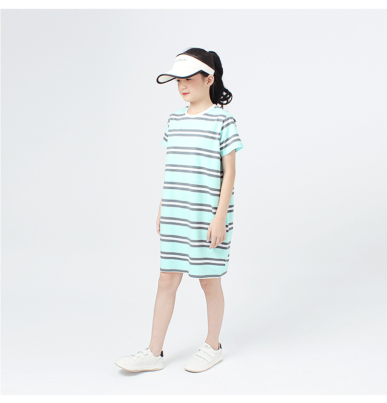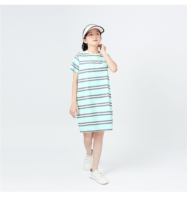 어린이 치마 여름 한국의 새로운 소녀 원피스 스트라이프 색상 대비 짧은 소매 잠옷 여성 보물 치마 도매스토어 가기