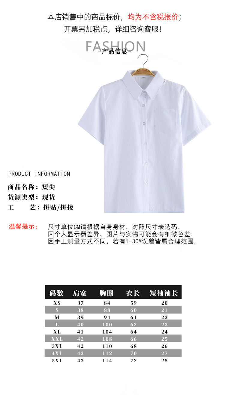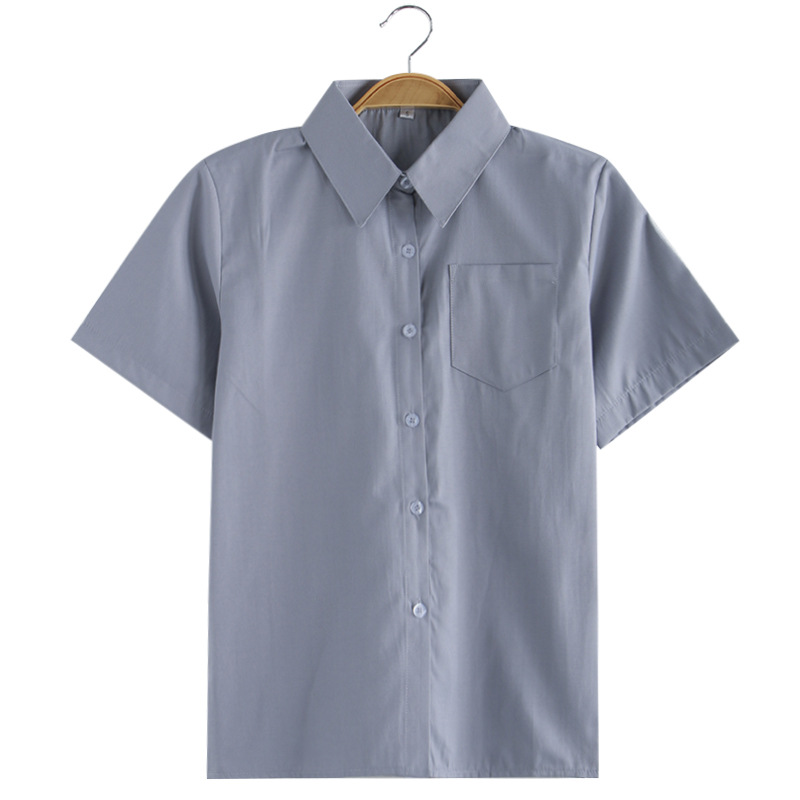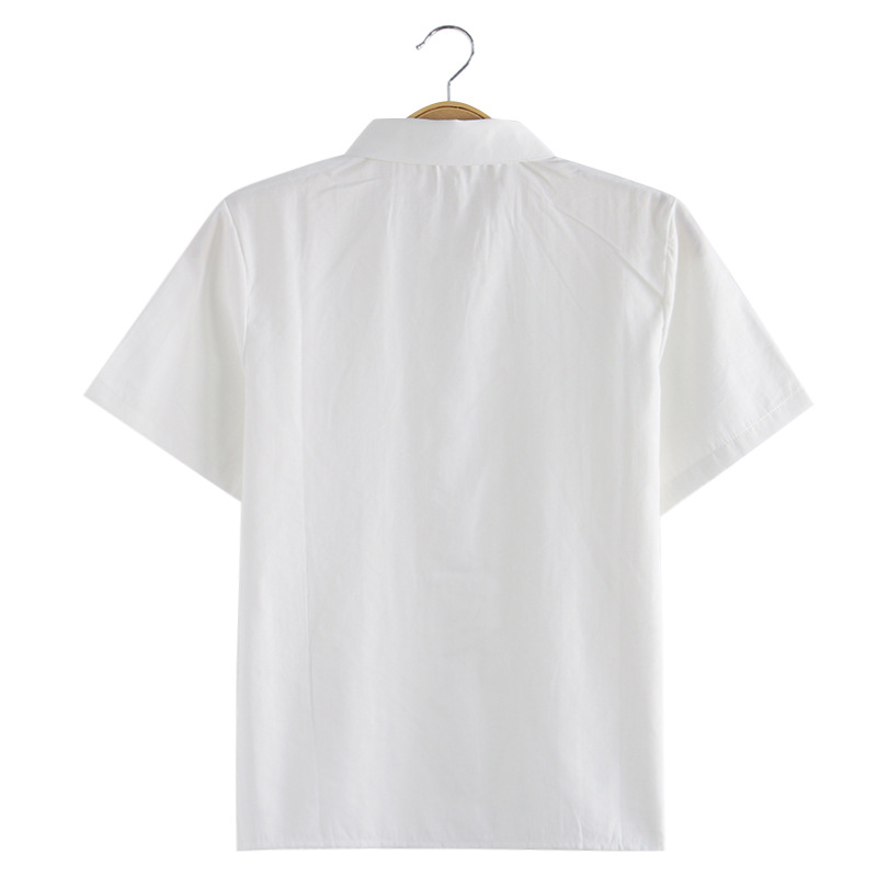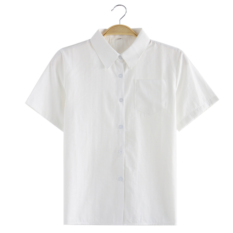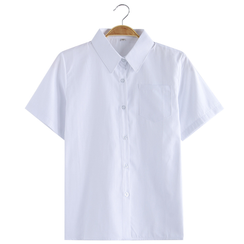 Jk 유니폼 여성 학생 여름 전문 툴링 뾰족한 목 크루 넥 오버롤 화이트 셔츠 긴팔 반팔 올매치 플러스 사이즈