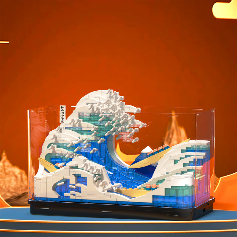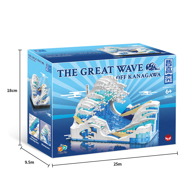 제가오 빌딩 블록 가나가와 서핑 장식 그림 장면 미니 마이크로 입자 어린이 퍼즐 빌딩 블록 장난감 선물스토어 가기