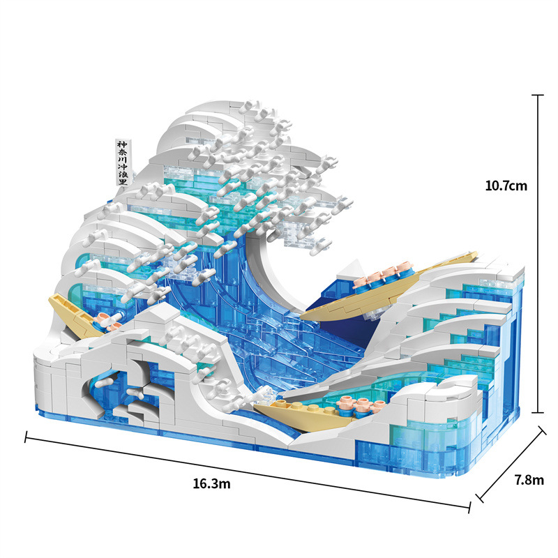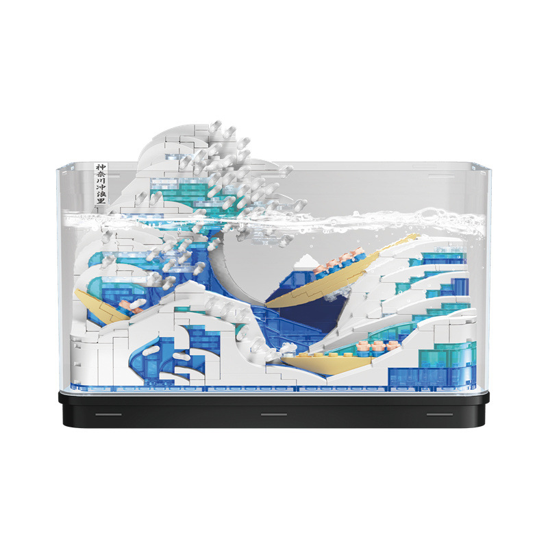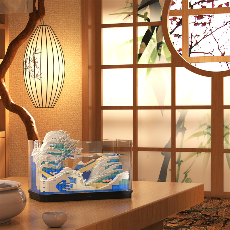 제가오 빌딩 블록 가나가와 서핑 장식 그림 장면 미니 마이크로 입자 어린이 퍼즐 빌딩 블록 장난감 선물