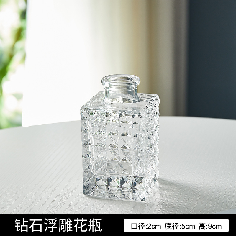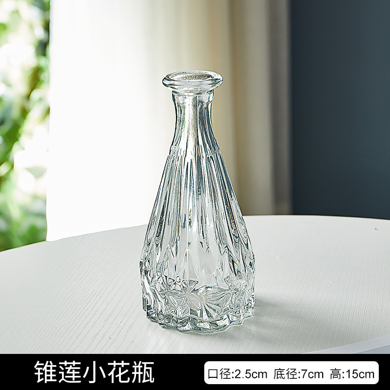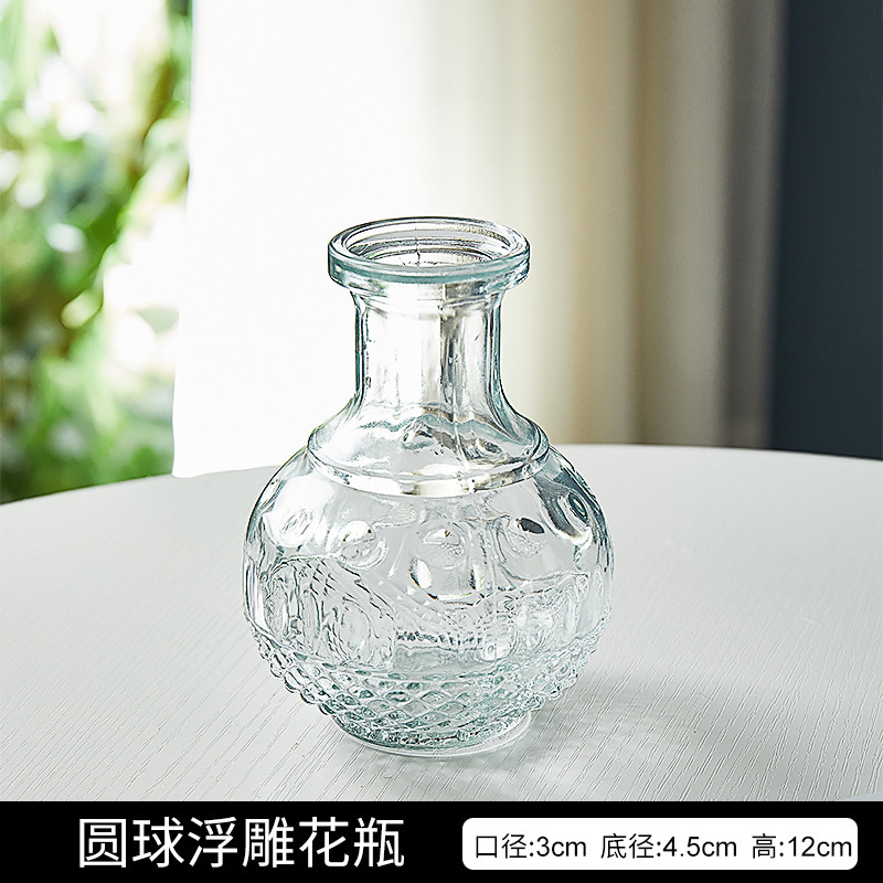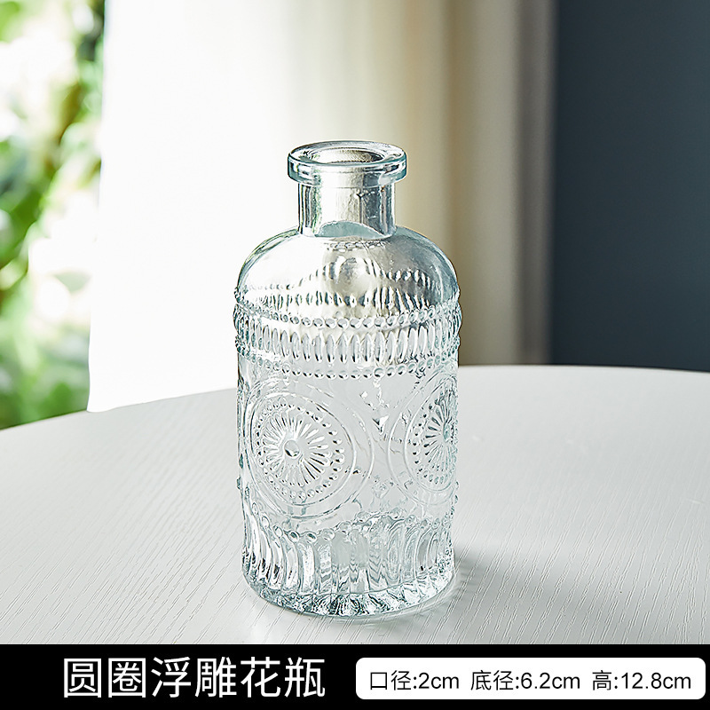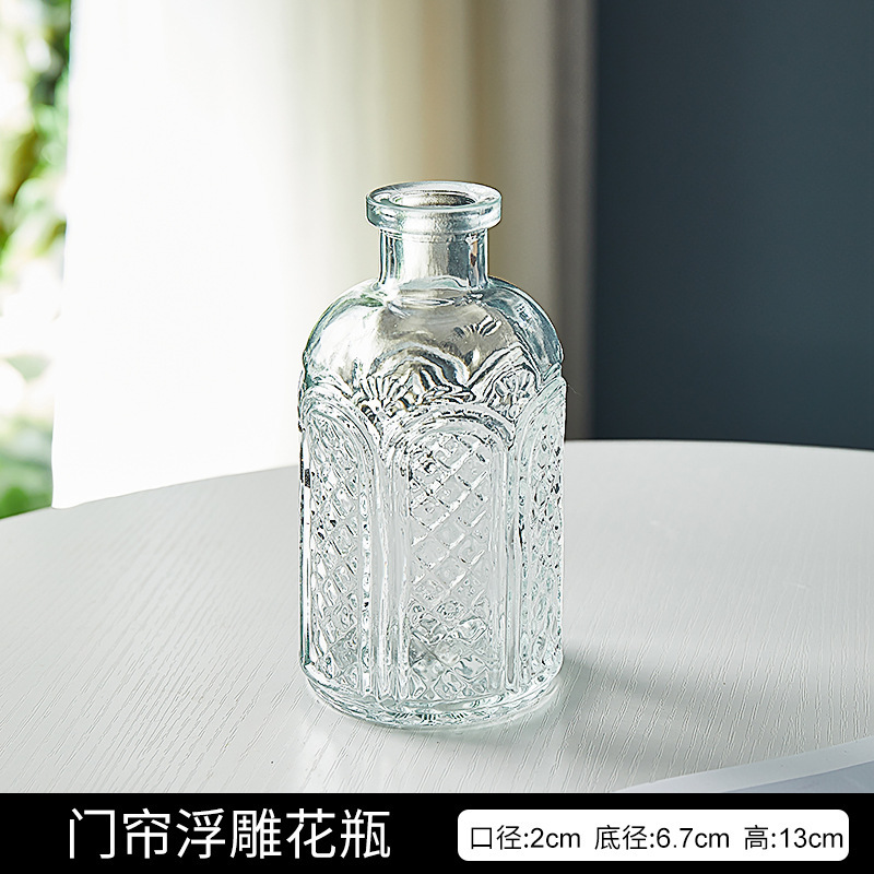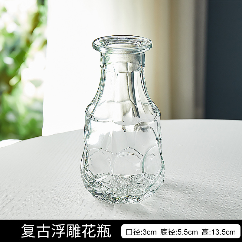 프랑스 복고풍 작은 꽃병 양각 유리 미니 꽃병 스타일 투명 수경 꽃 배열 거실 장식 장식품스토어 가기