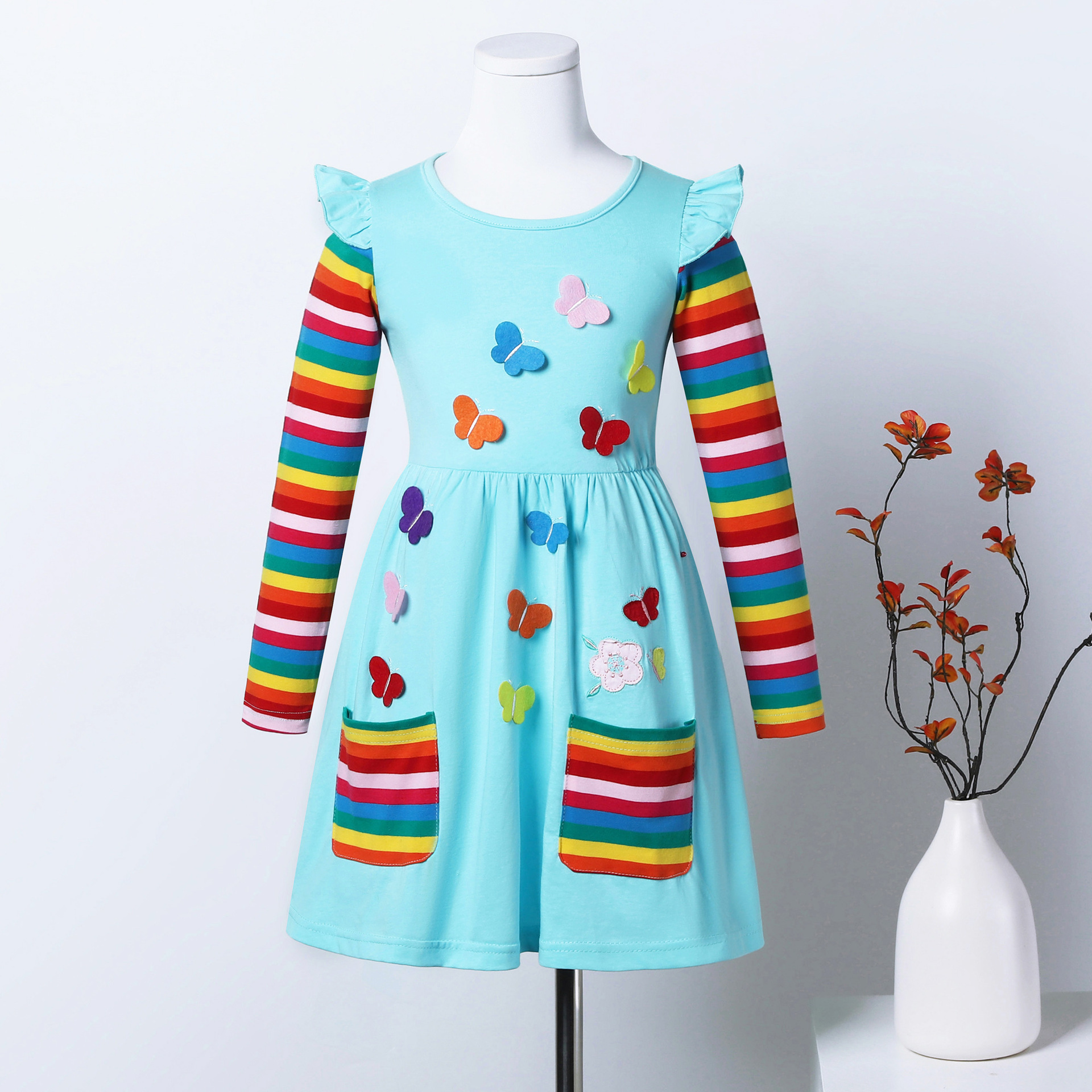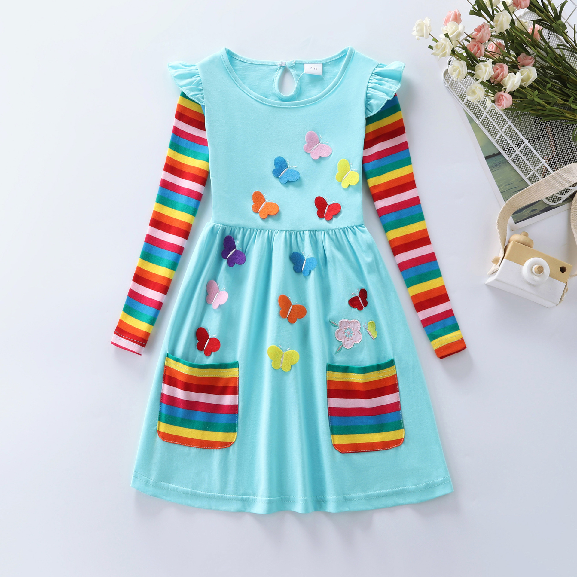 여자 긴 소매 원피스 캐주얼 귀여운 자수 포켓 소녀 면 원피스 LH81058스토어 가기