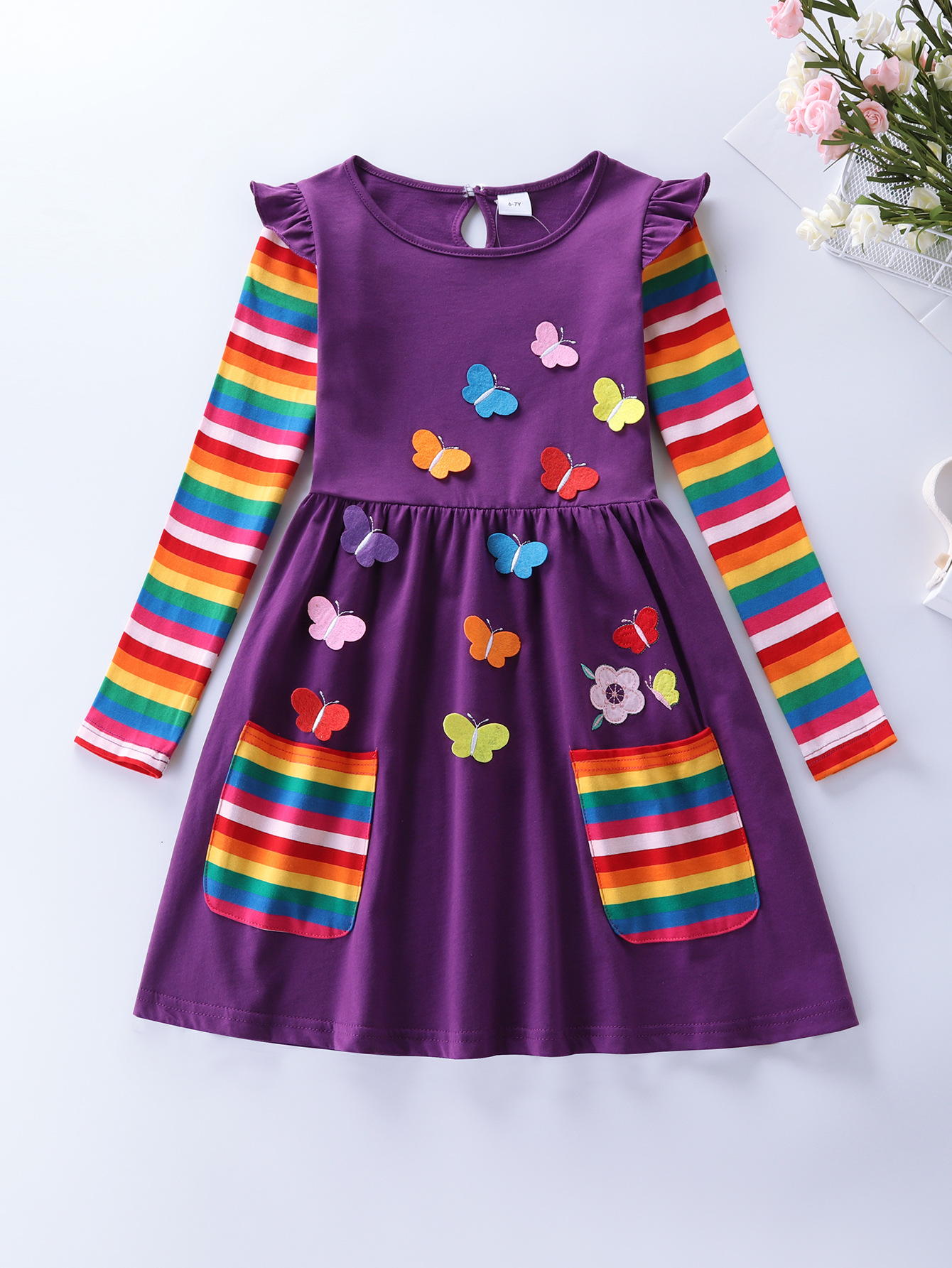 여자 긴 소매 원피스 캐주얼 귀여운 자수 포켓 소녀 면 원피스 LH81058