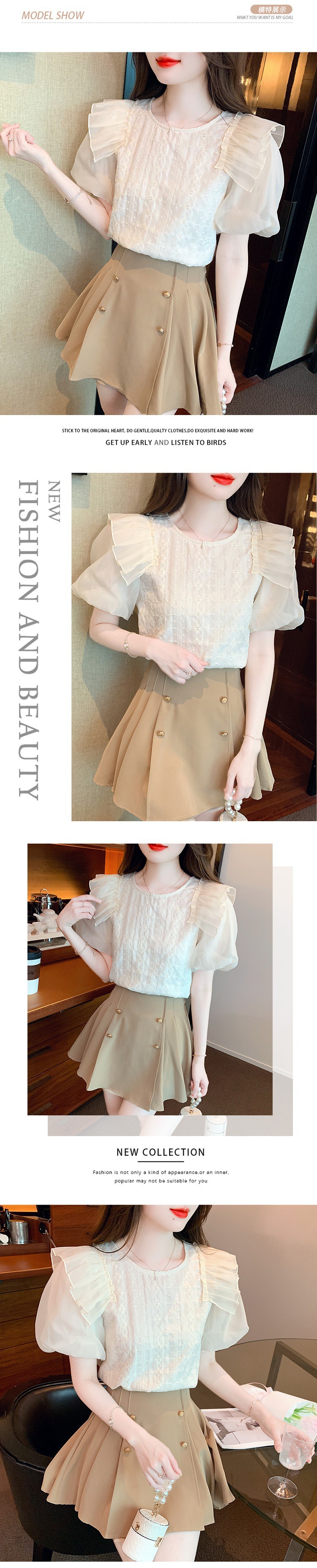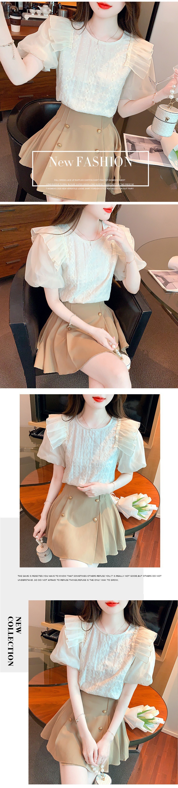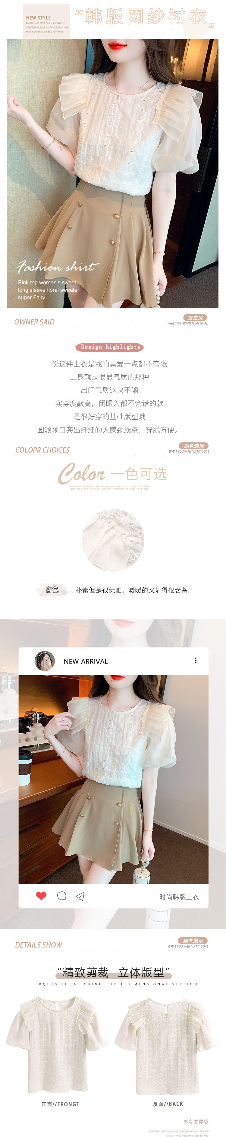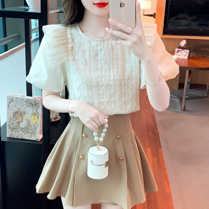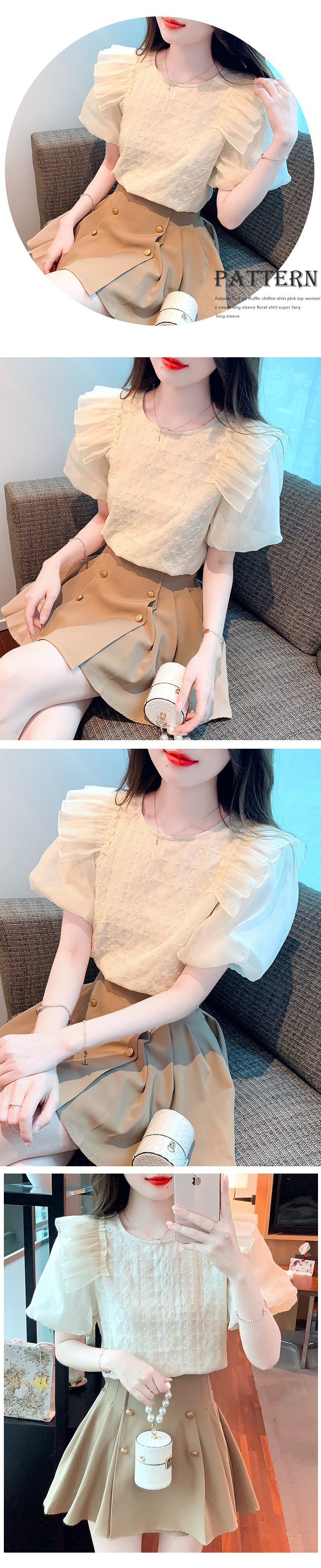 쉬폰 반팔 셔츠 여성용 여름 디자인 센스 러플 스티치 퍼프 슬리브 탑 프랑스 스타일리스트 셔츠스토어 가기