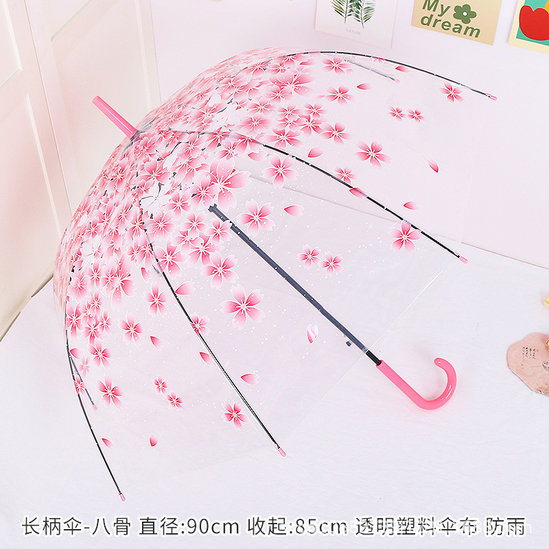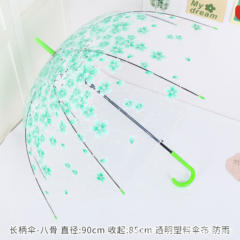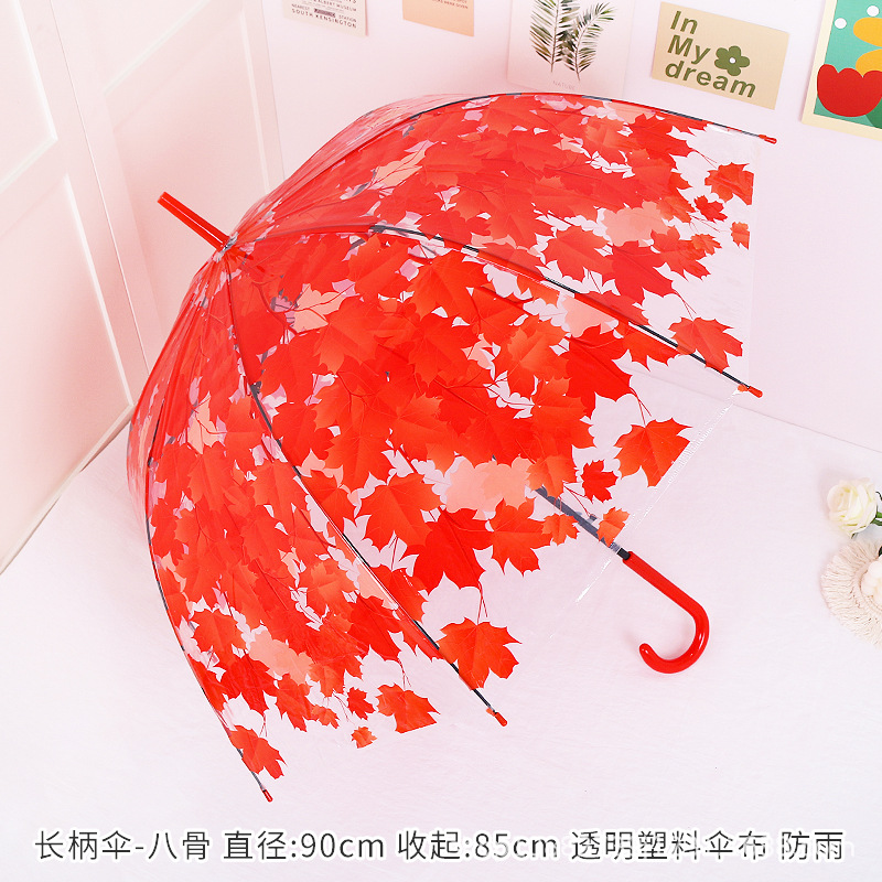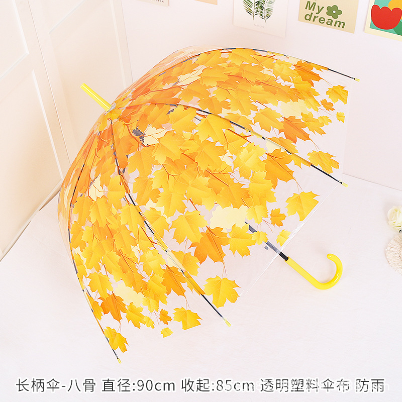 소박한 숲풍 학생 아폴로 아치형 긴 손잡이 플라스틱 투명 나뭇잎 벚꽃 우산 어린이 공연 도매스토어 가기