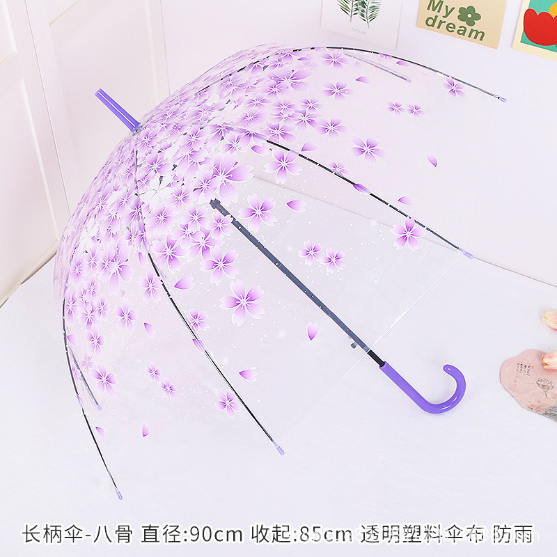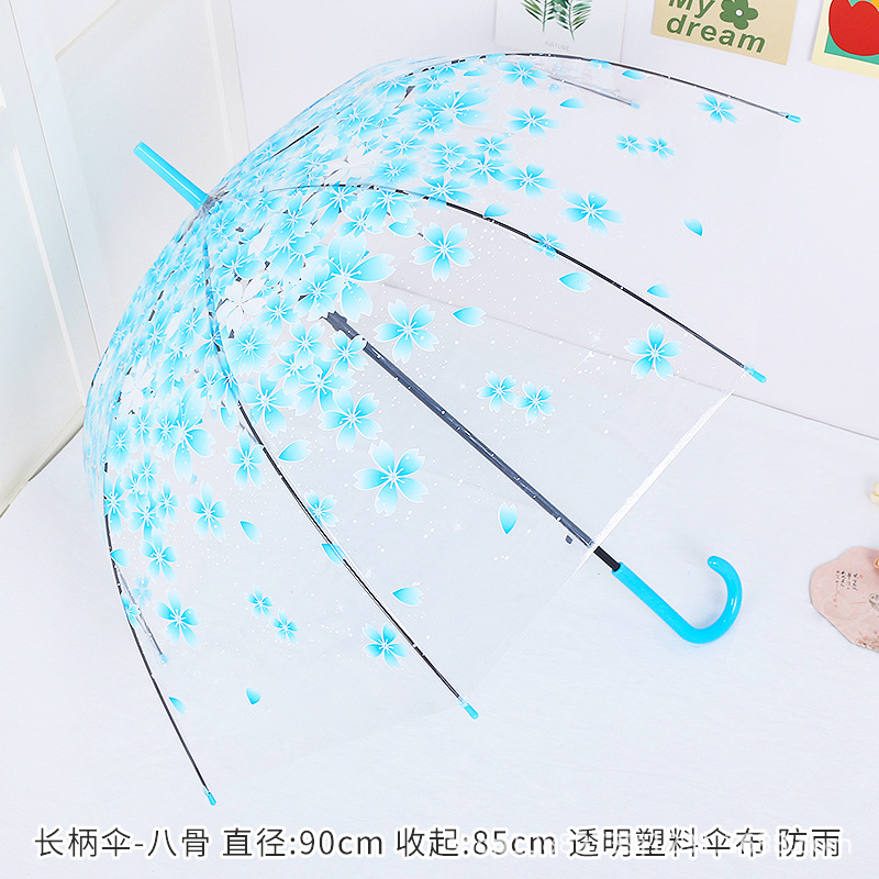 소박한 숲풍 학생 아폴로 아치형 긴 손잡이 플라스틱 투명 나뭇잎 벚꽃 우산 어린이 공연 도매